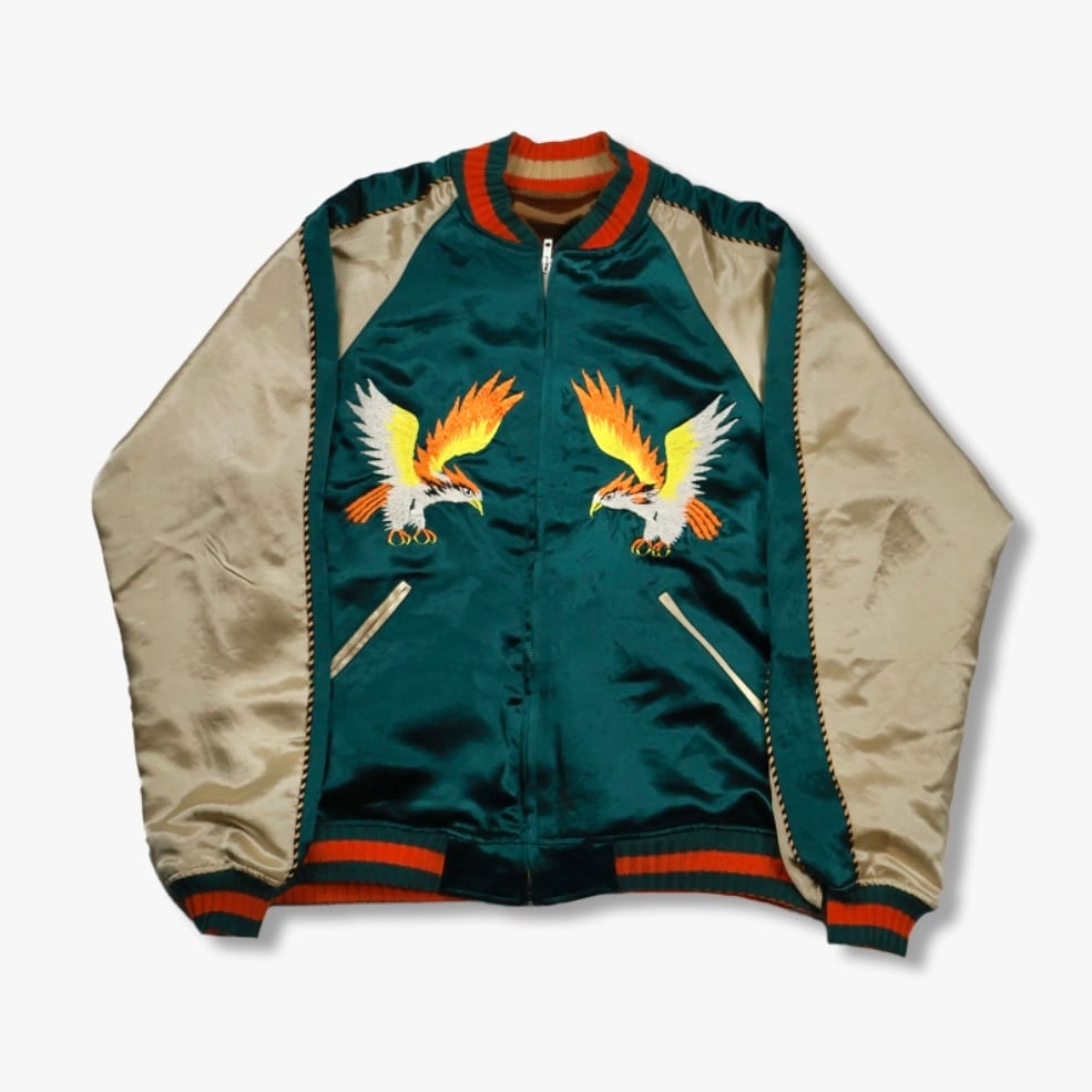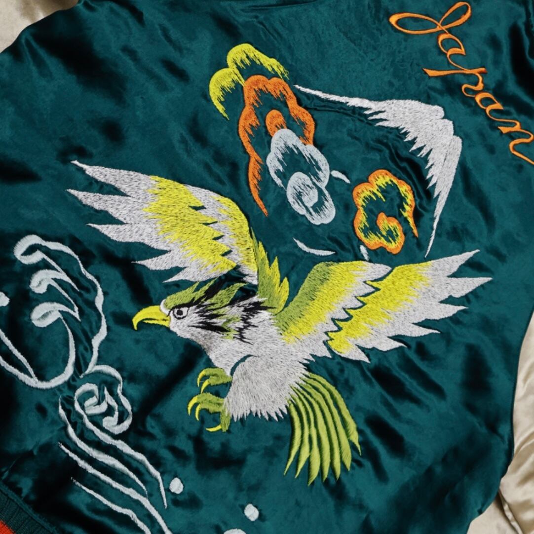A 面に鷹、B 面に龍をモチーフにしたスーベニアジャケット、通称スカジャンです。