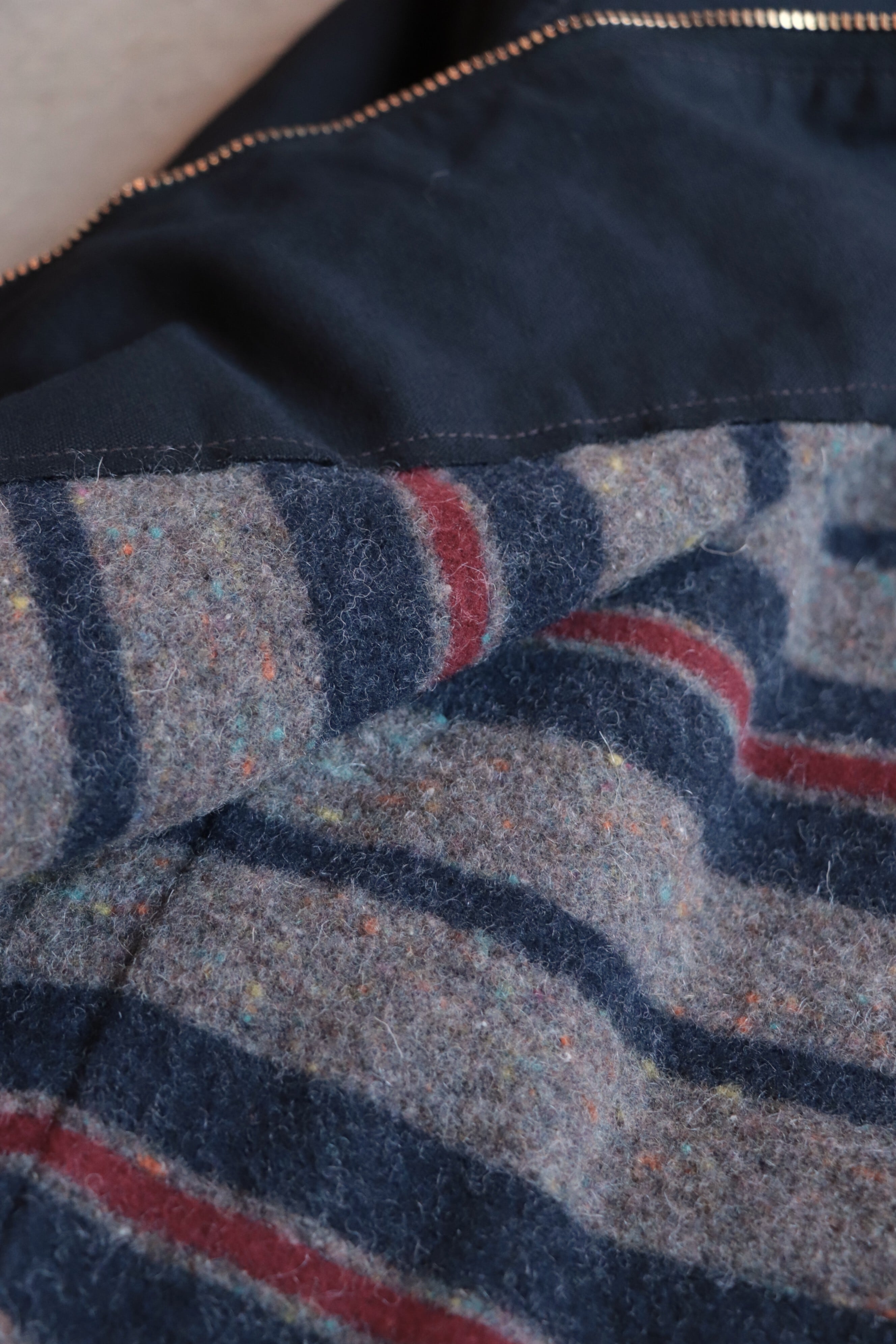 ライニングにはウールブランケットを使用し、袖には中綿キルト仕様で、防寒性も申し分ありません。