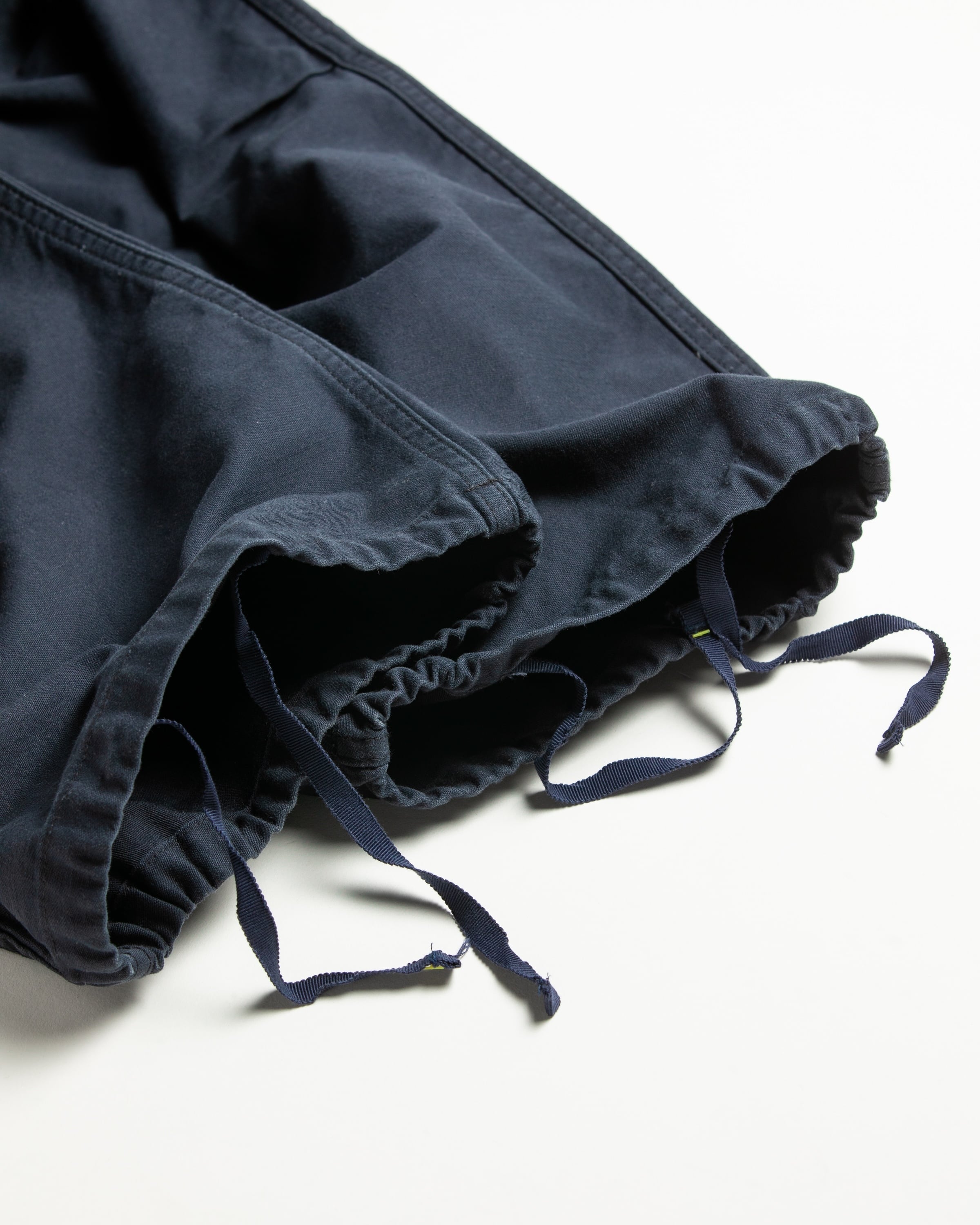 フラップポケットや膝のタック、裾のドローコードなど、ミリタリーのディティール満載の1着。
