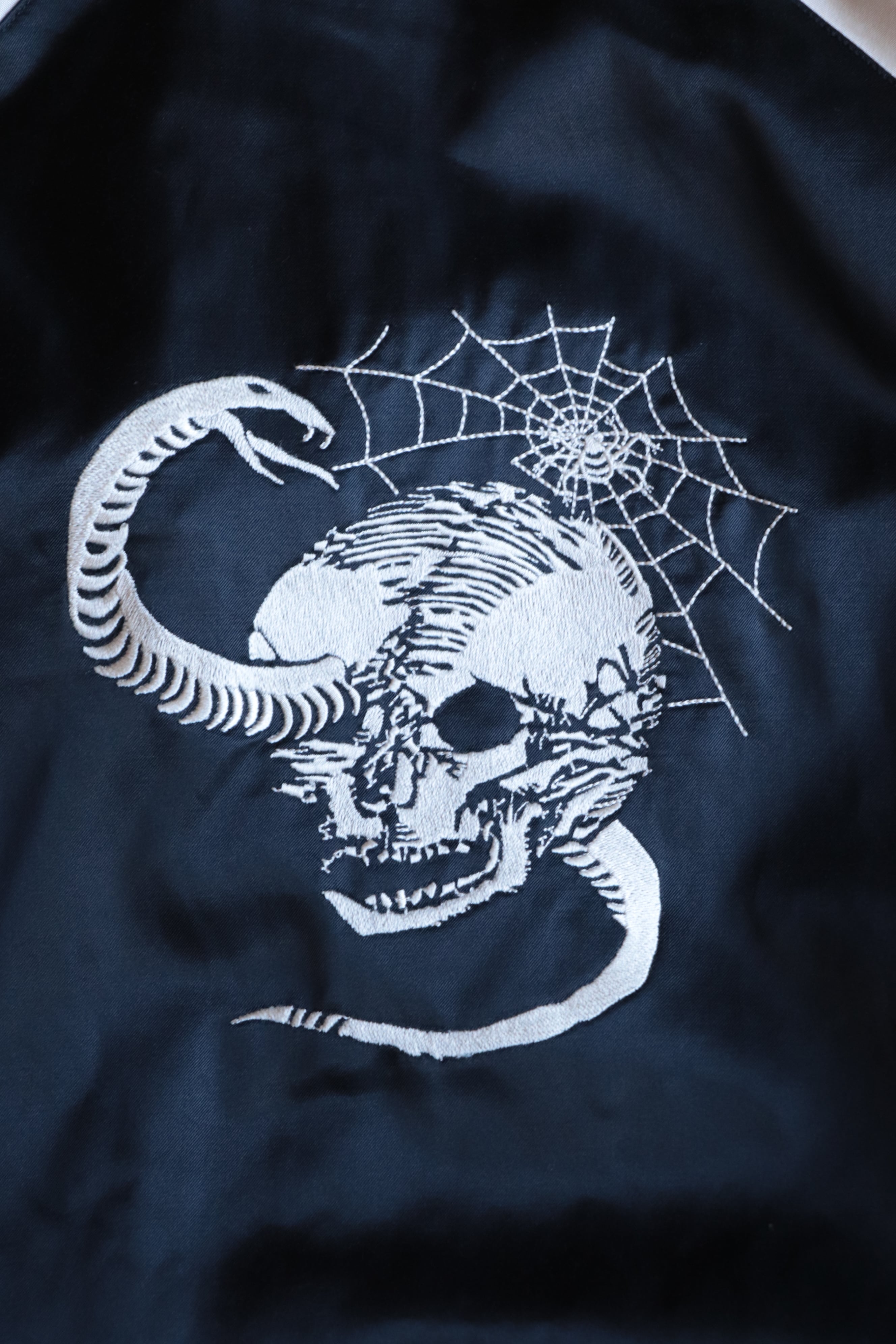 タテ糸にレーヨン、ヨコ糸にコットンを配したサテン生地。スカジャンに使用される素材をライトにアップデートしております。