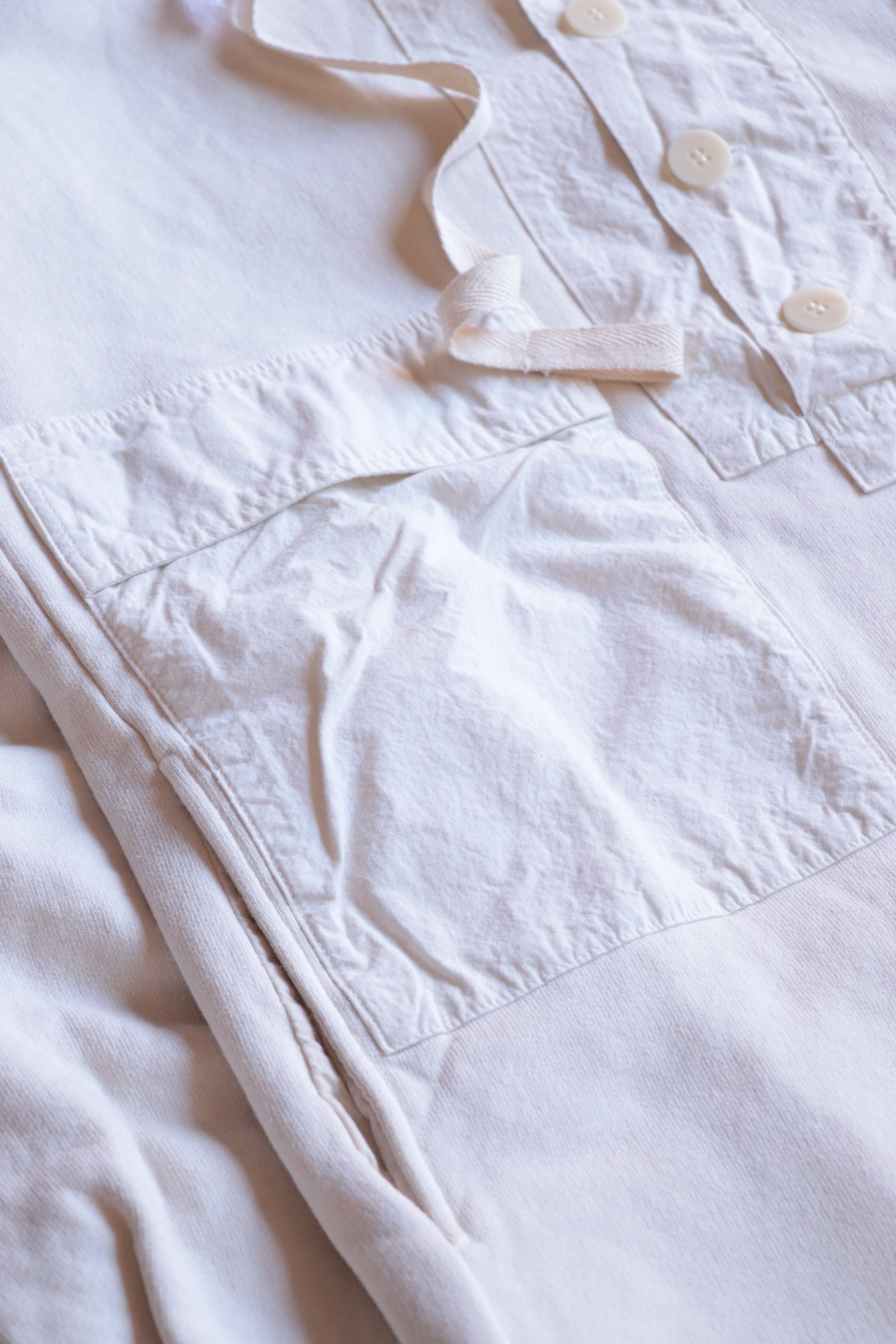 オーバーサイズのアイテムの為、脇線にはハンドウォームポケットを完備。