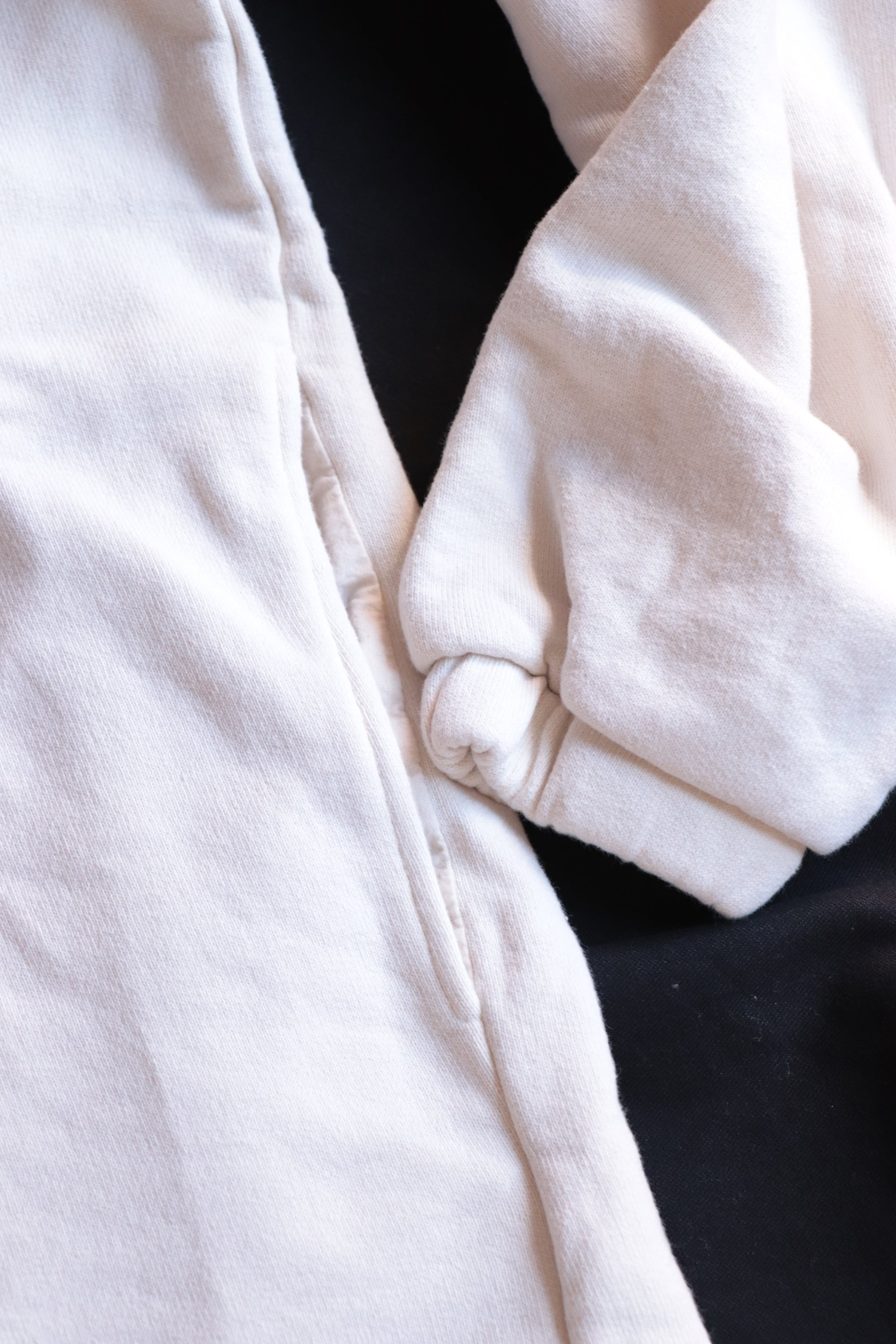 コットン85%、アクリル15%のオリジナルスウェット生地は軽量で型崩れしにくく、コットン100%の裏毛に比べ、内側の起毛が保温効果をもたらしてくれます。
