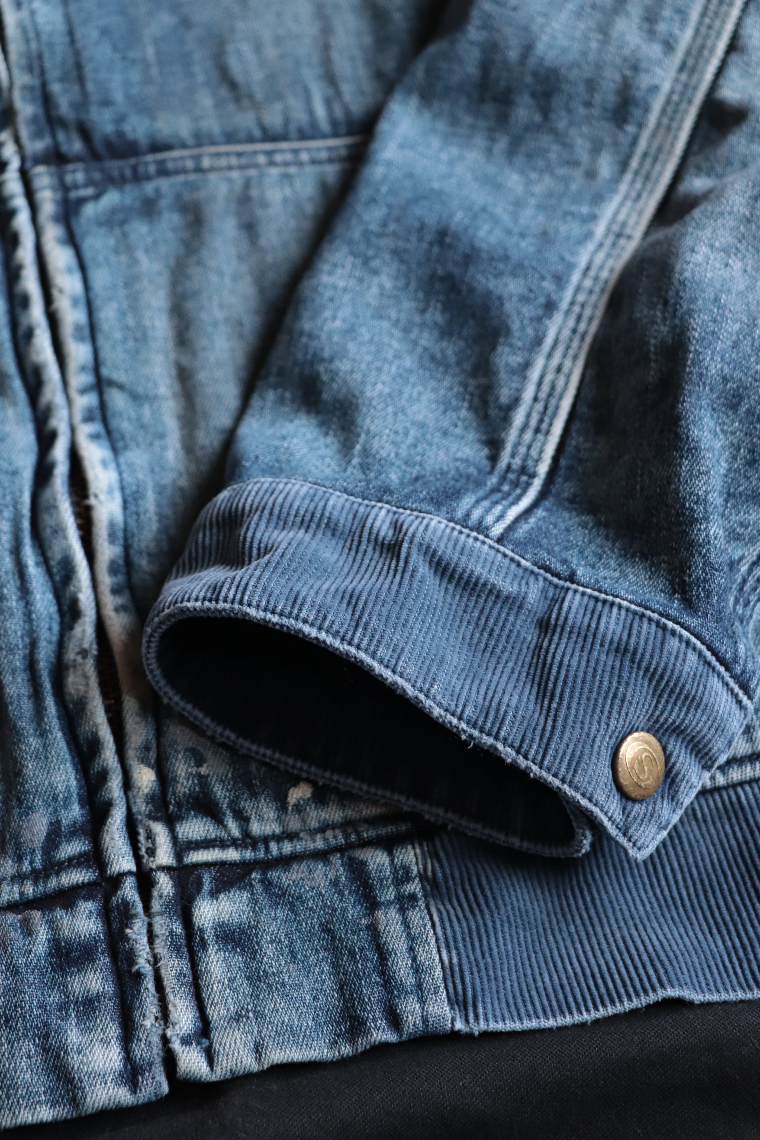 リブに見立てた袖口、裾部分は機能面、耐久性を重視してコーデュロイを使用。