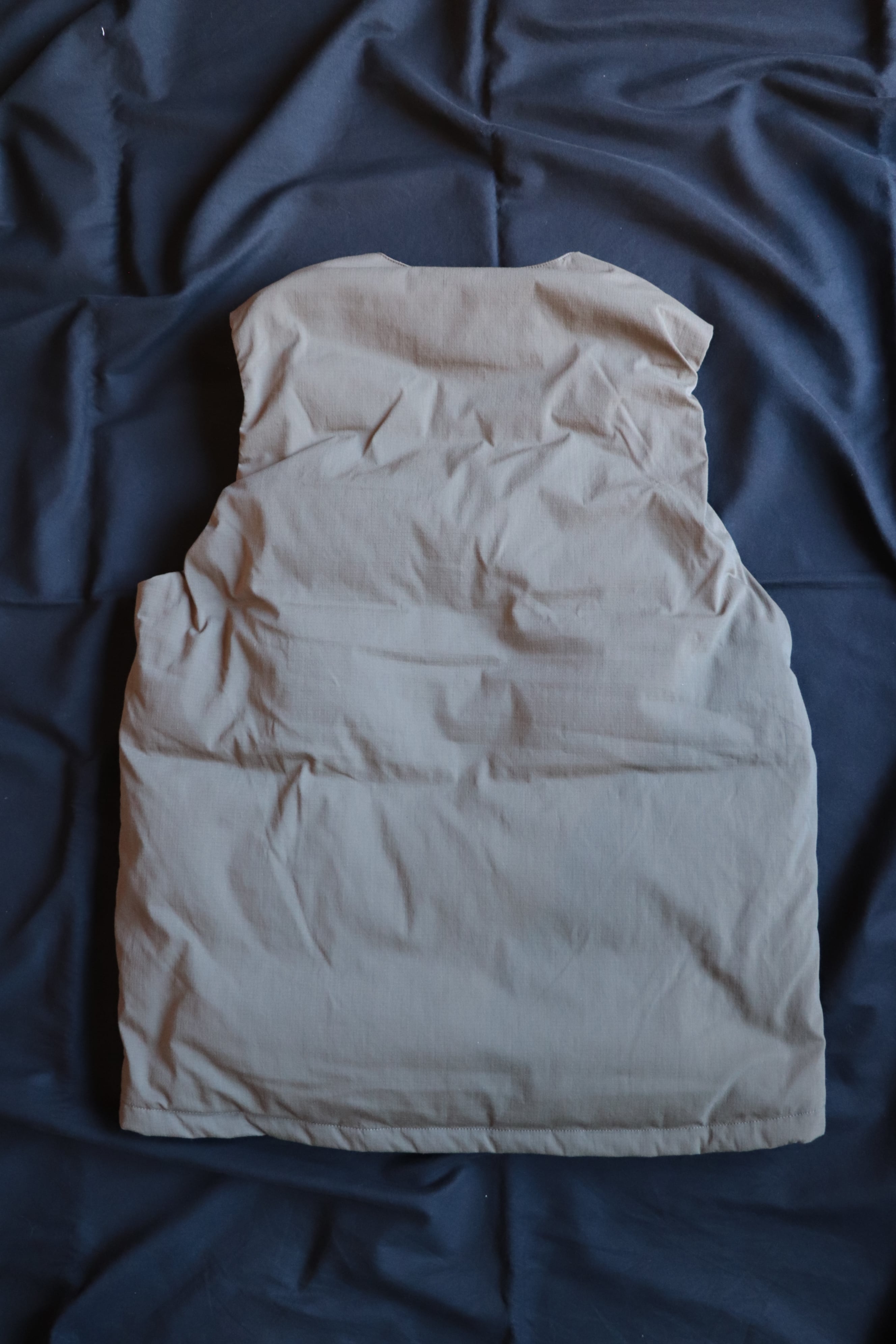 定番素材 "TAKIBI RIP STOP" を採用したミニマルなインナーダウンベストです。