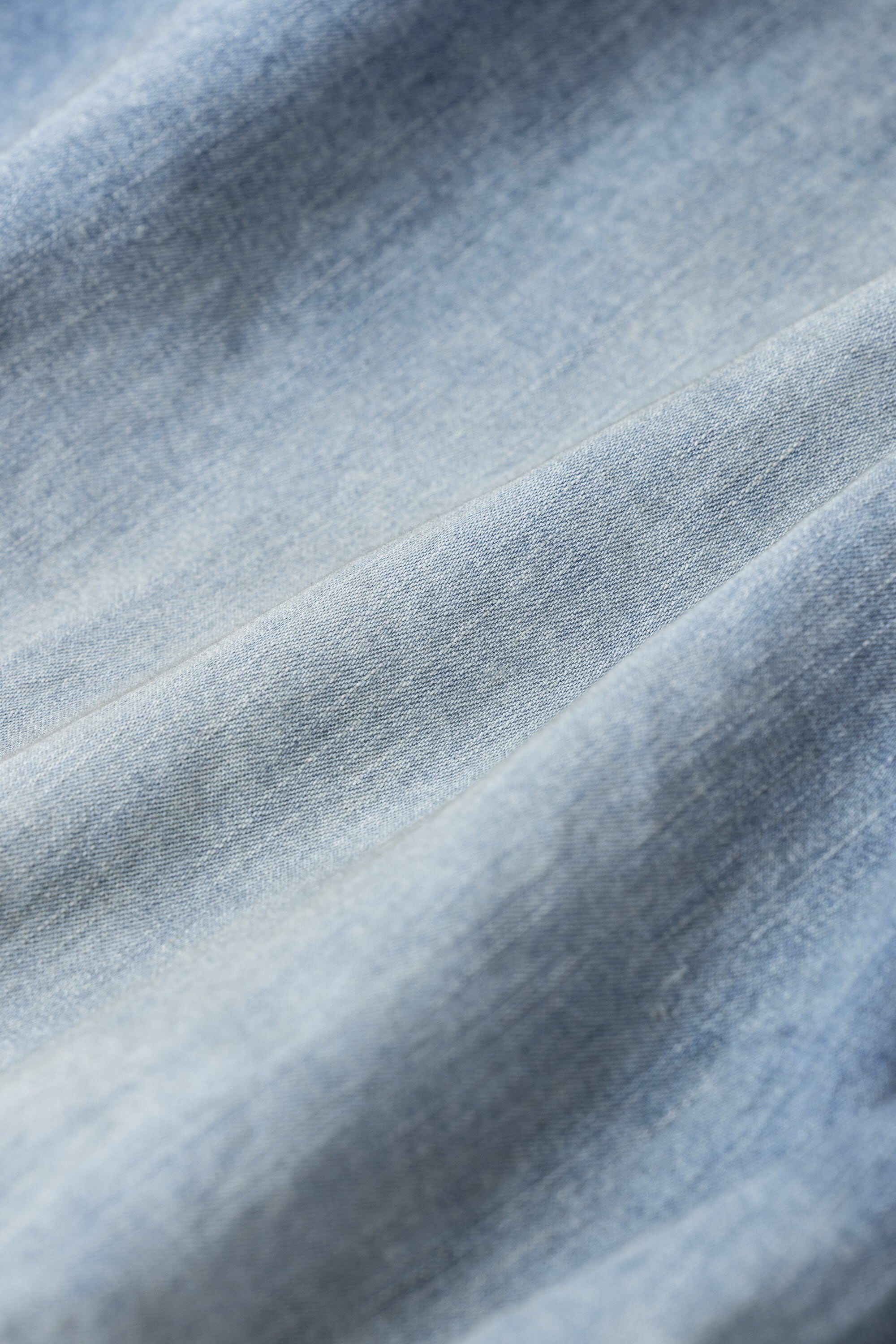 経糸コットン100%のムラ糸、ヨコ糸に綿麻混紡糸を打ったライトオンスデニムです。