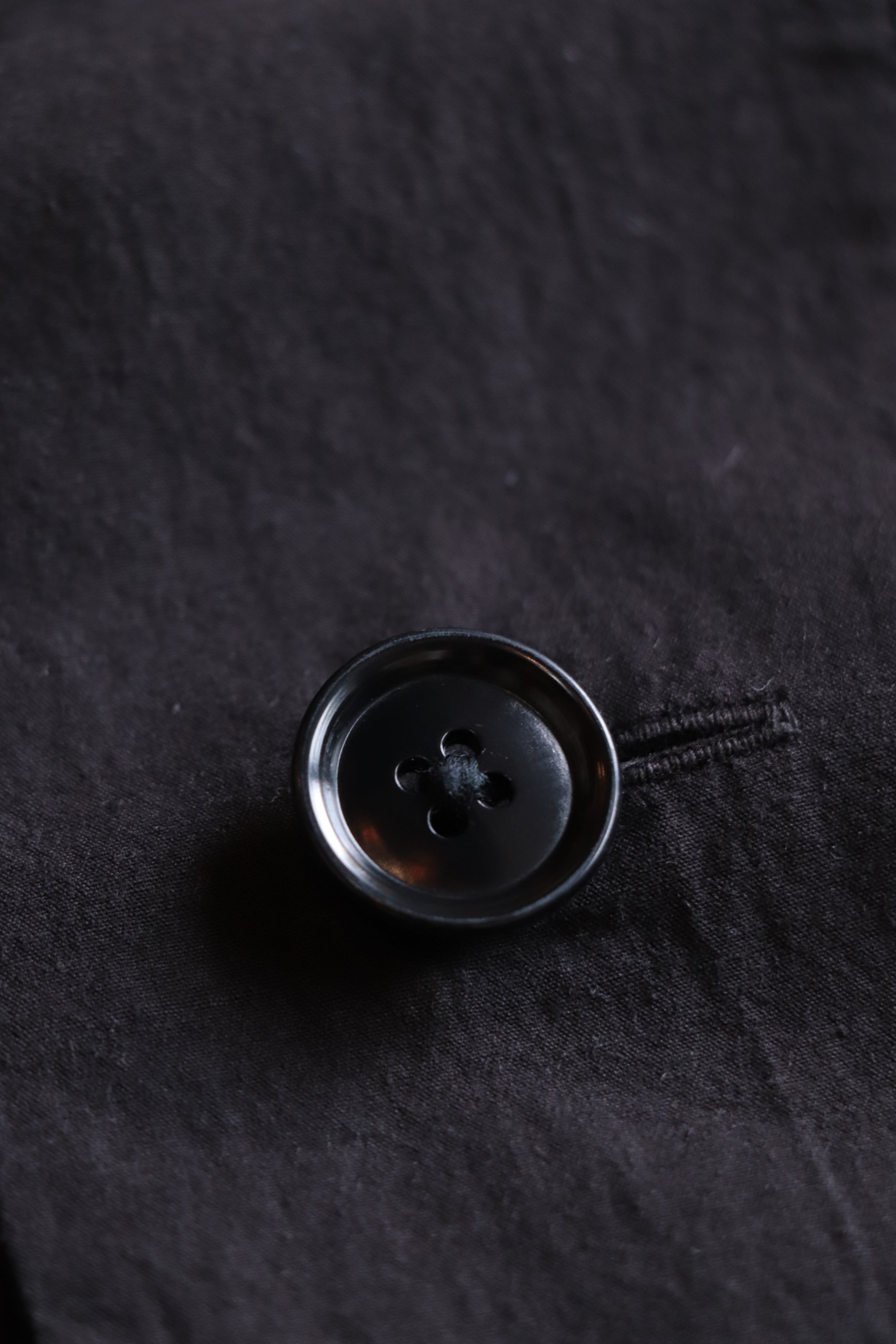縦⽷に50番⼿コットン単⽷を、緯⽷には40番⼿の綿⿇混紡⽷を⽤い、⾼密度にタイプライター織りしたものを近江晒さんにて特殊モミ洗い加⼯が施されています。