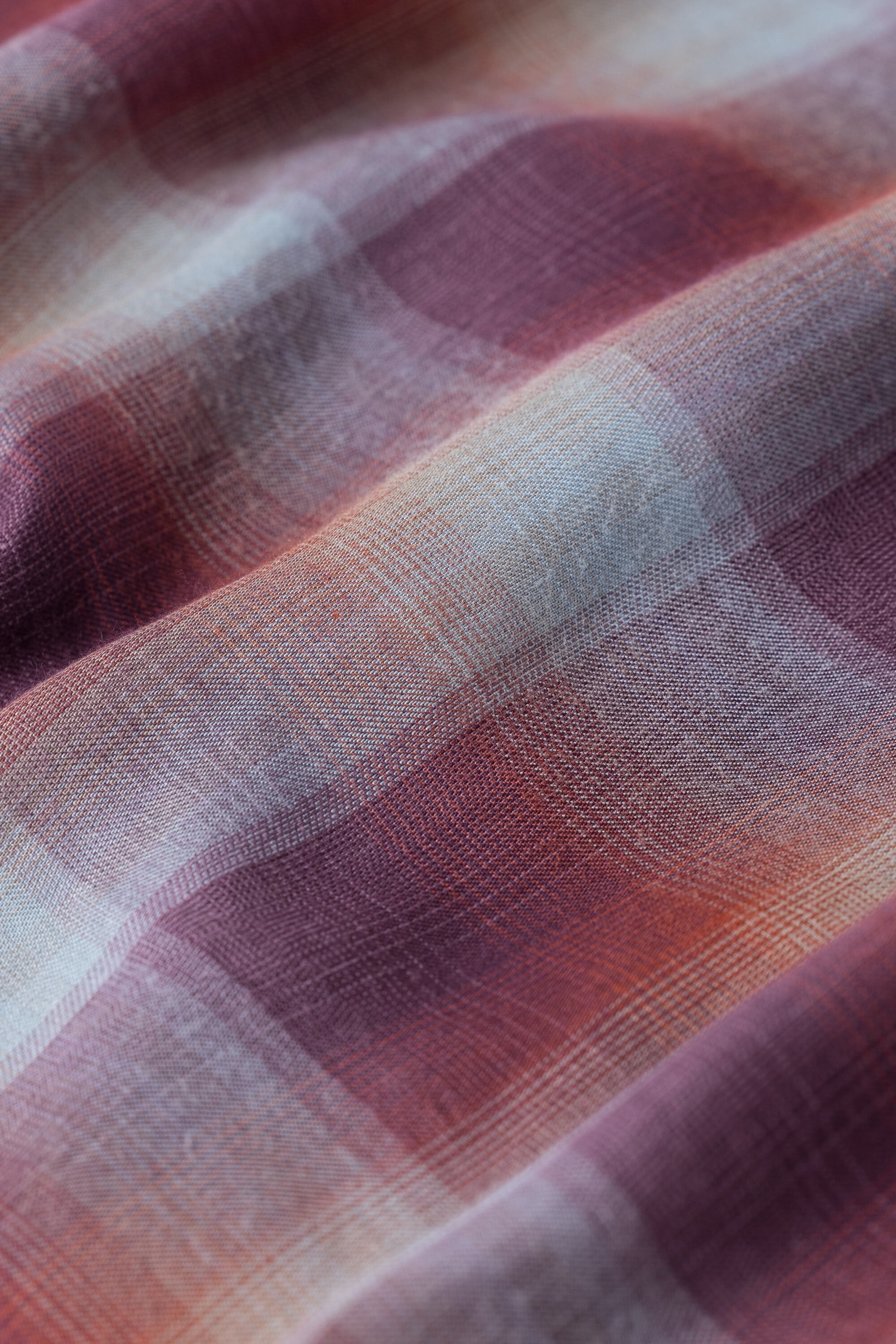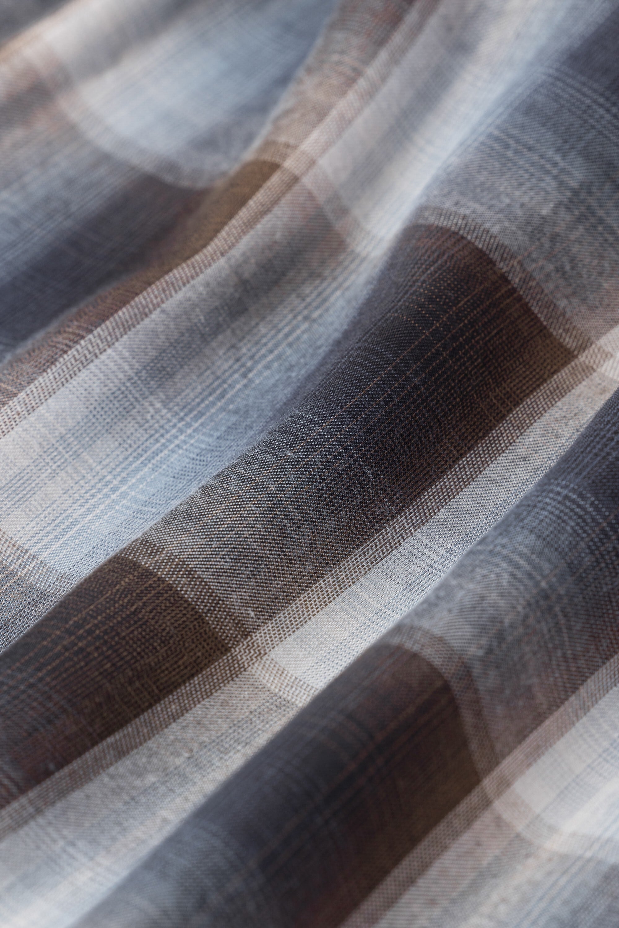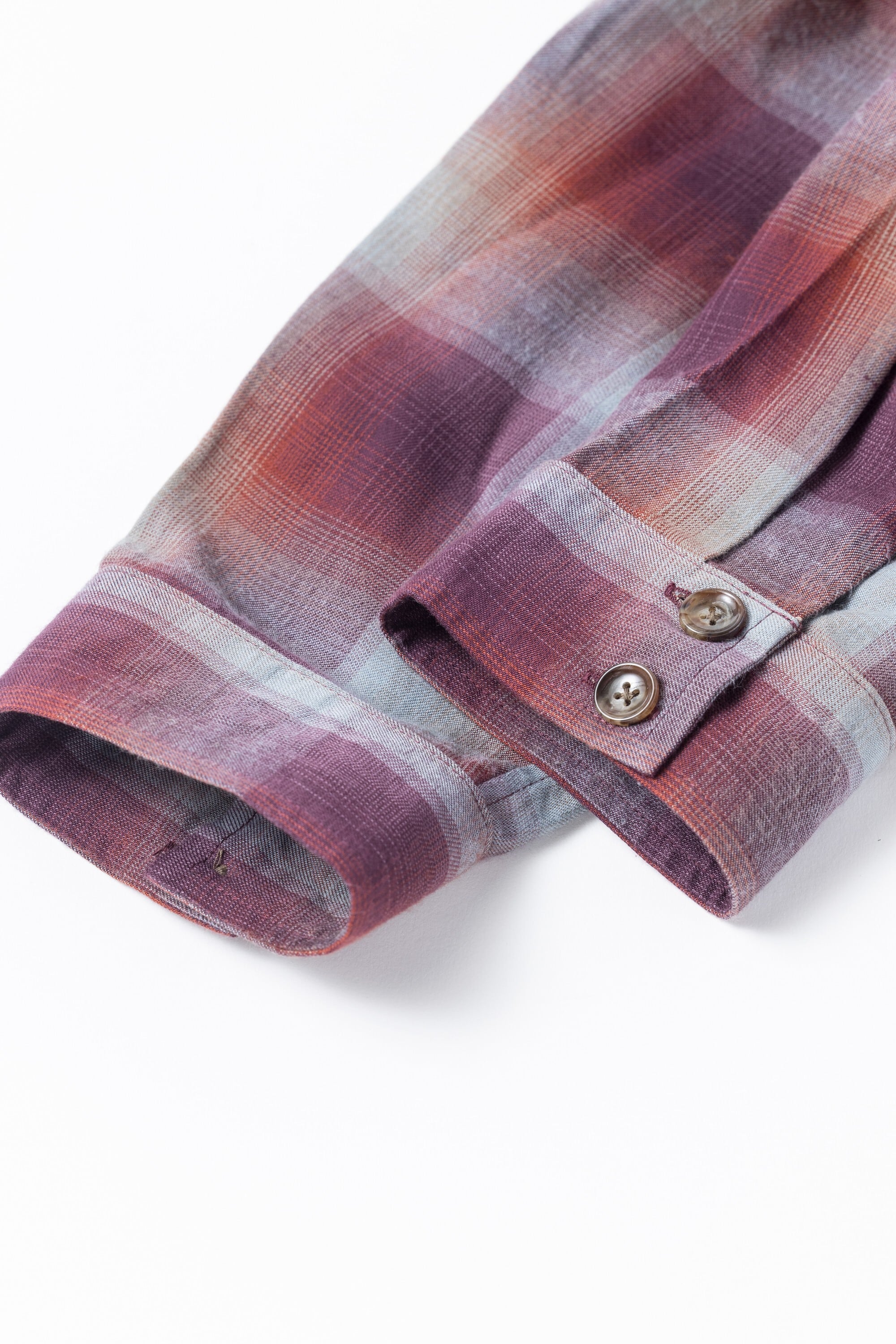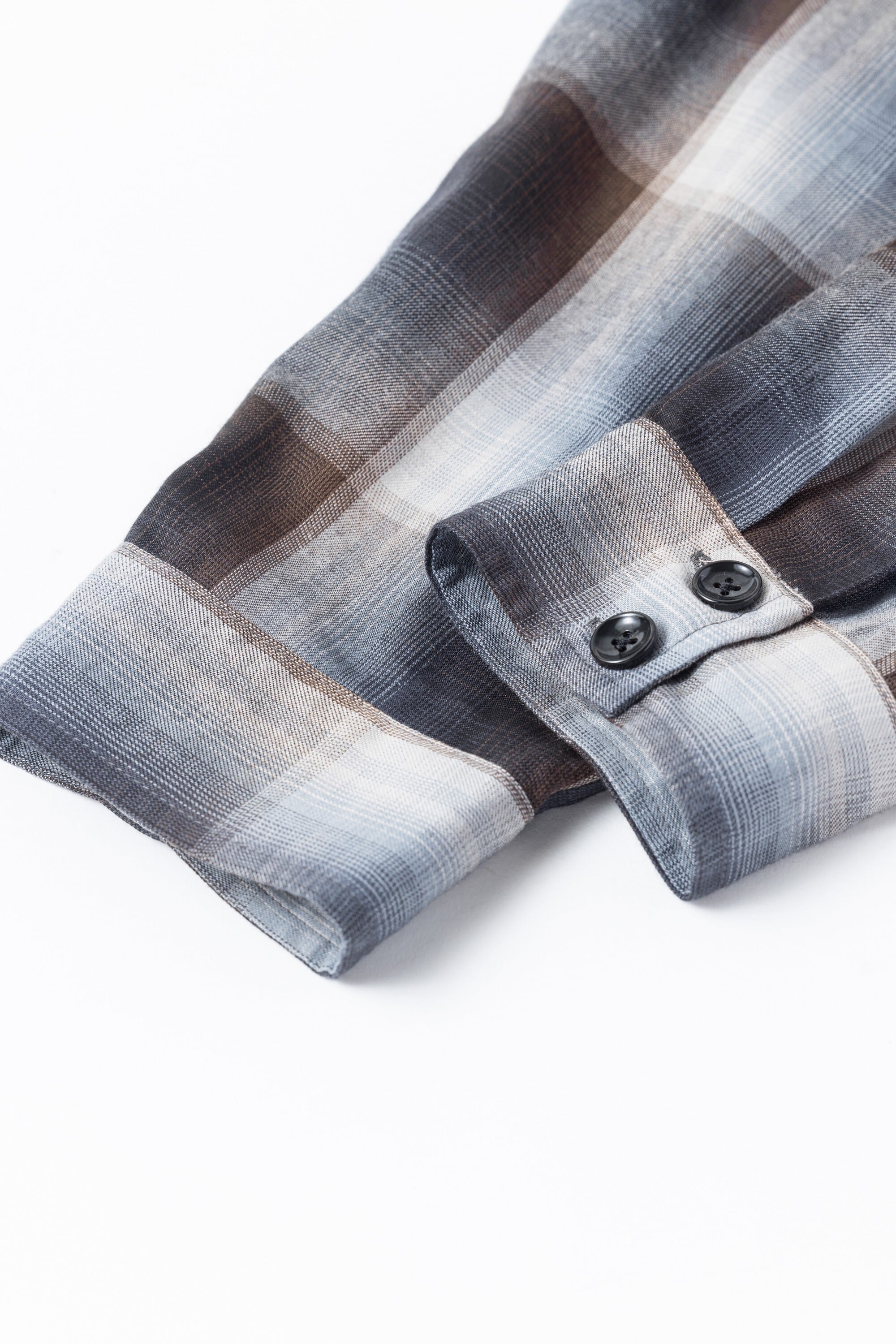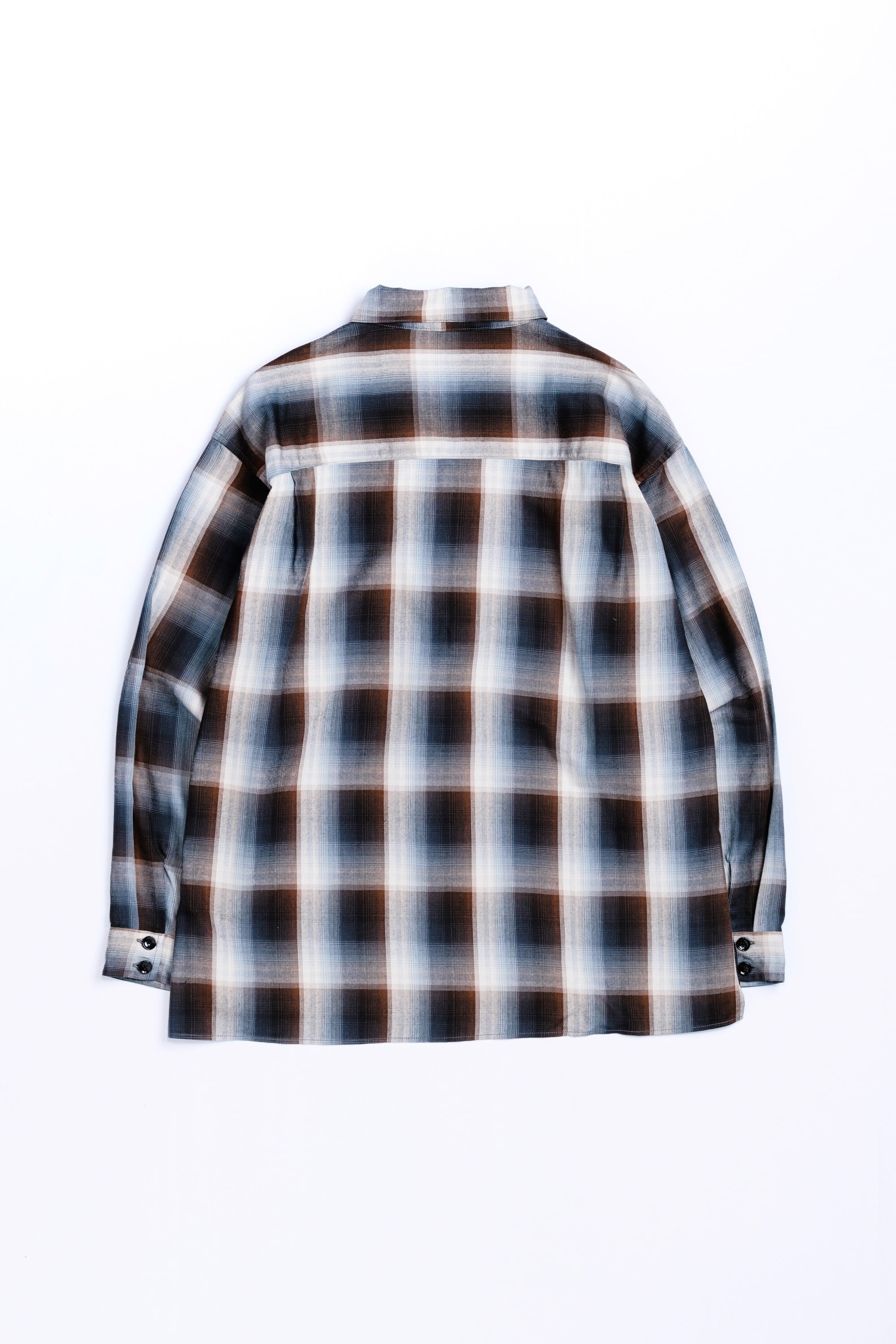オンブレチェック柄のオープンカラーシャツ。