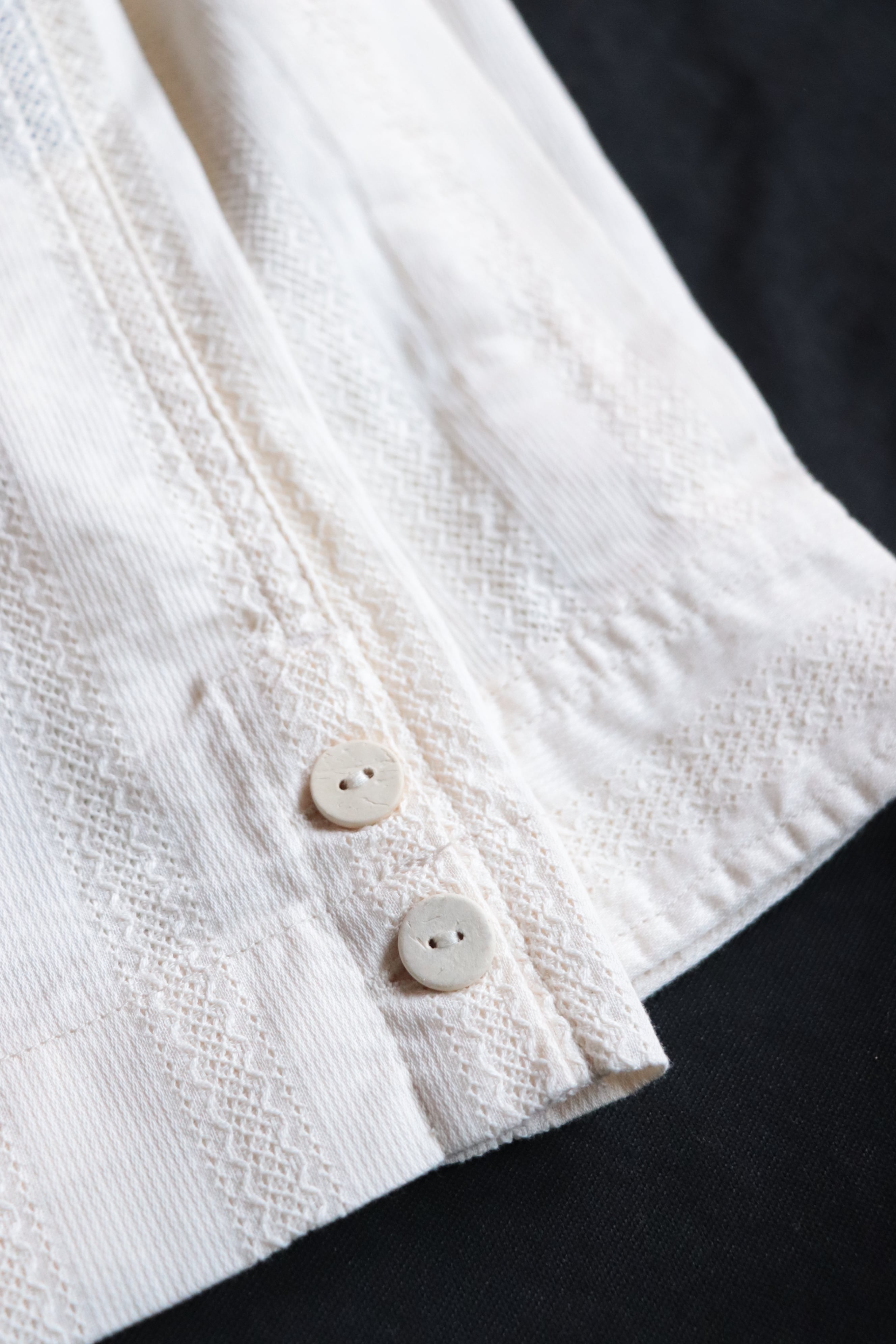 ヴィンテージテキスタイルを参考にした装飾カラミ生地を使ったハバナシャツです。
