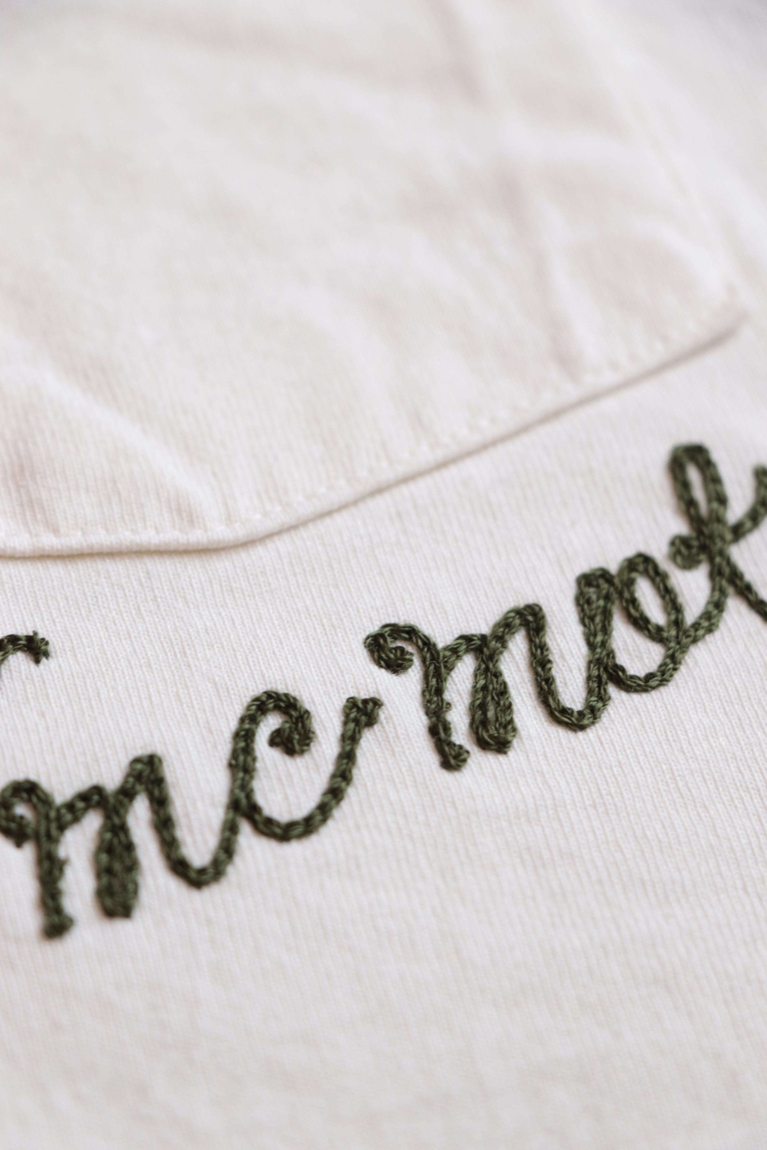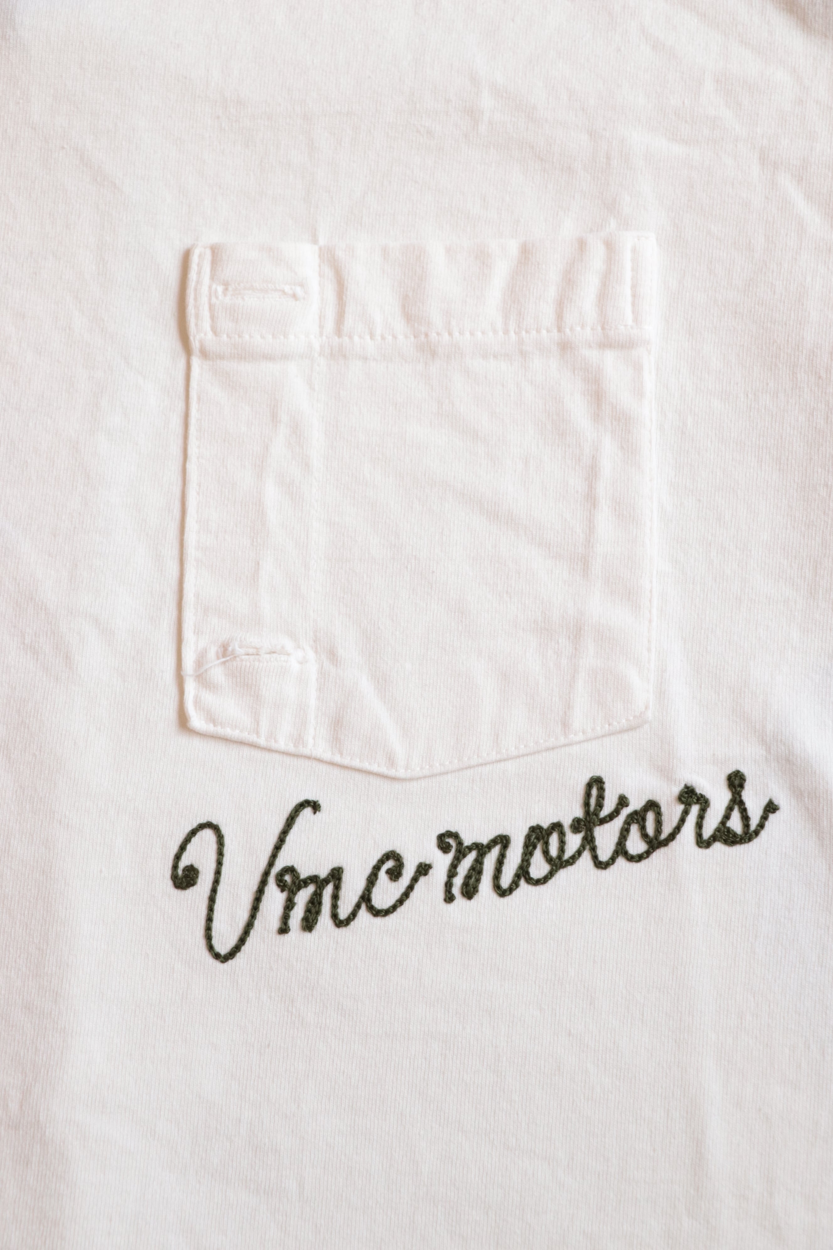 ポケット下のチェーン刺繍が目を惹くTシャツです。