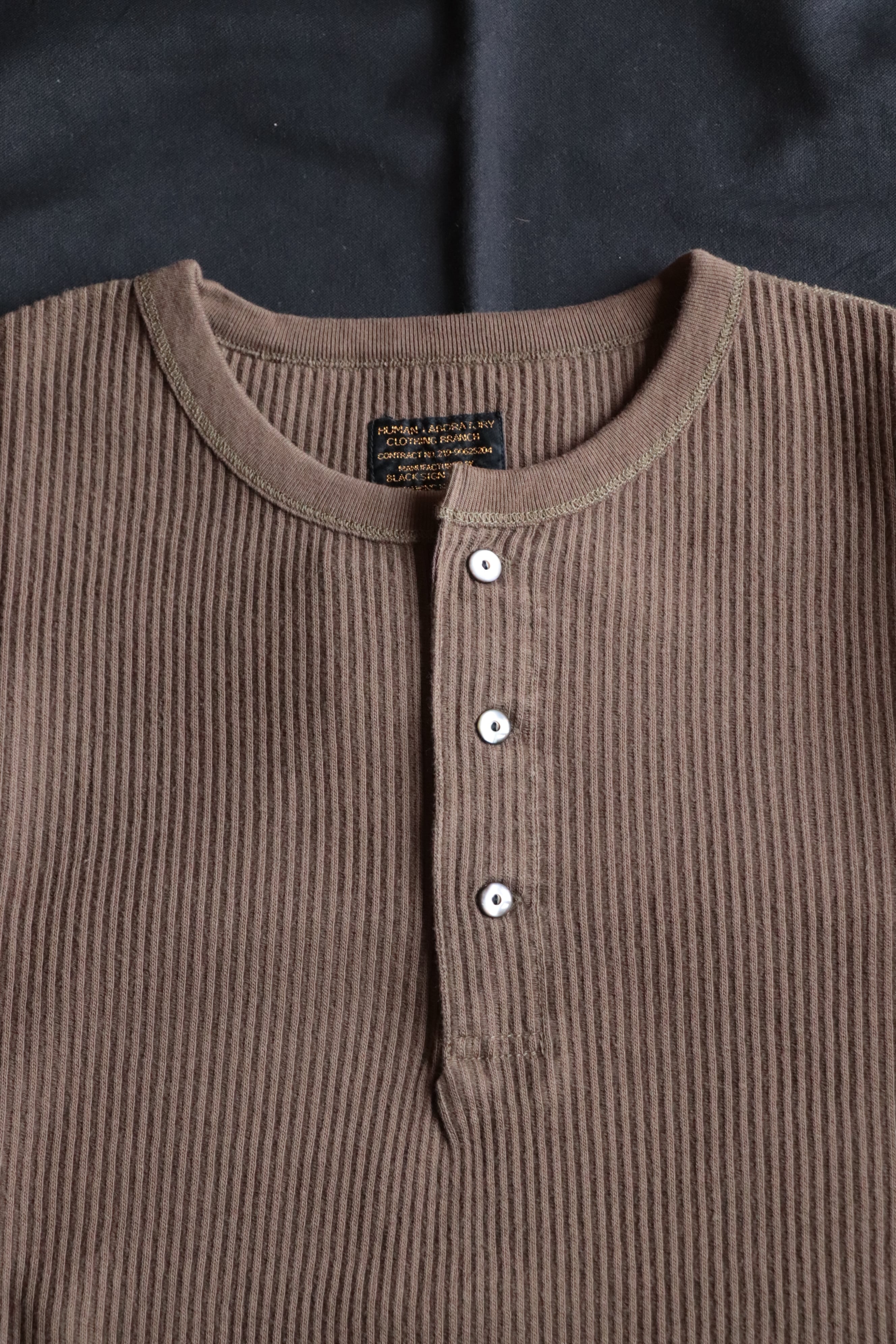 表情のある生地とリブ仕様の袖口がクラシカルな空気感を、そしてヘンリーネックが程よい男らしさを演出する1枚に仕上がっております。