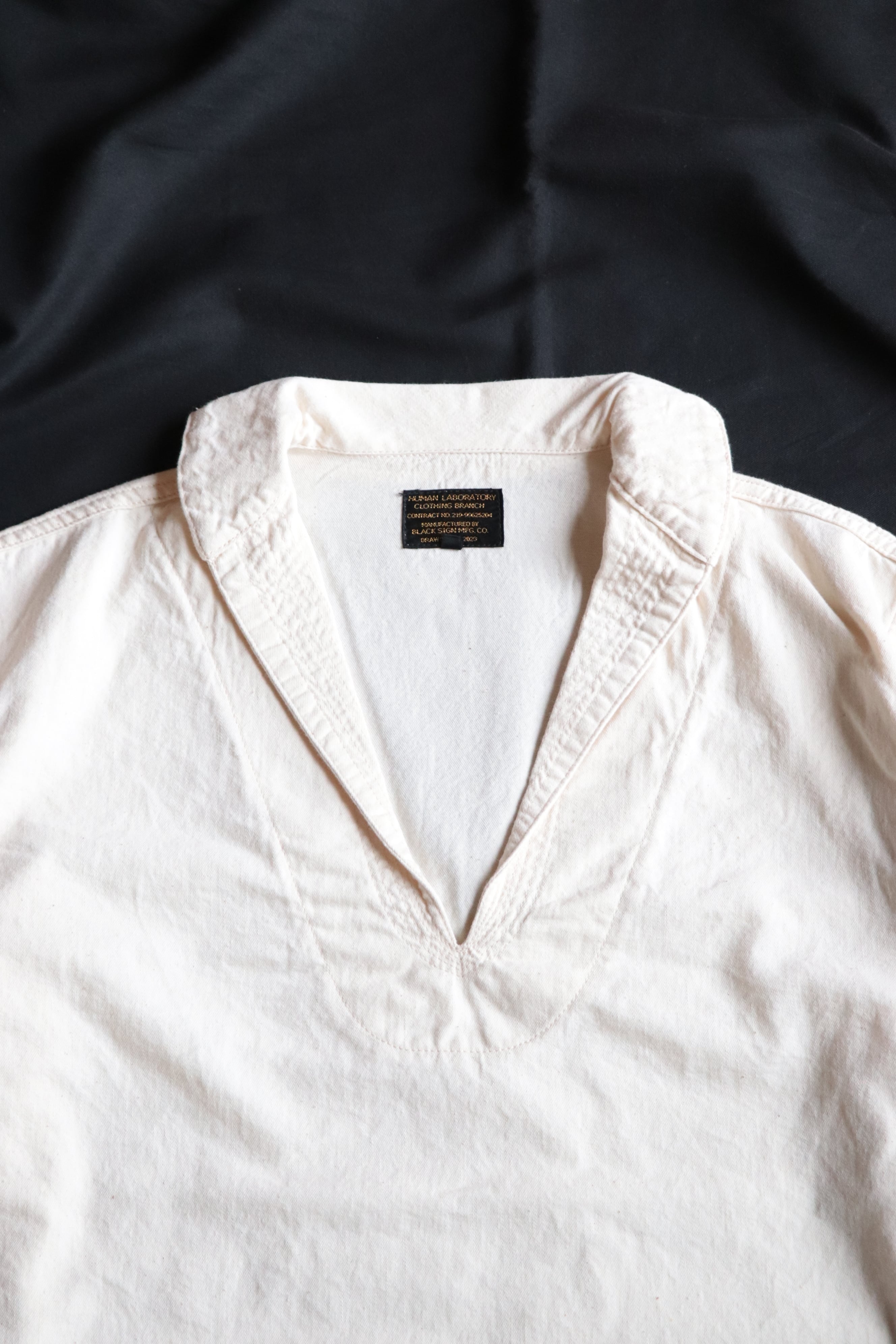 U.S.NAVYのセーラージャケットをベースに、襟を小ぶりなラウンドカラーにモディファイドしたシャツです。