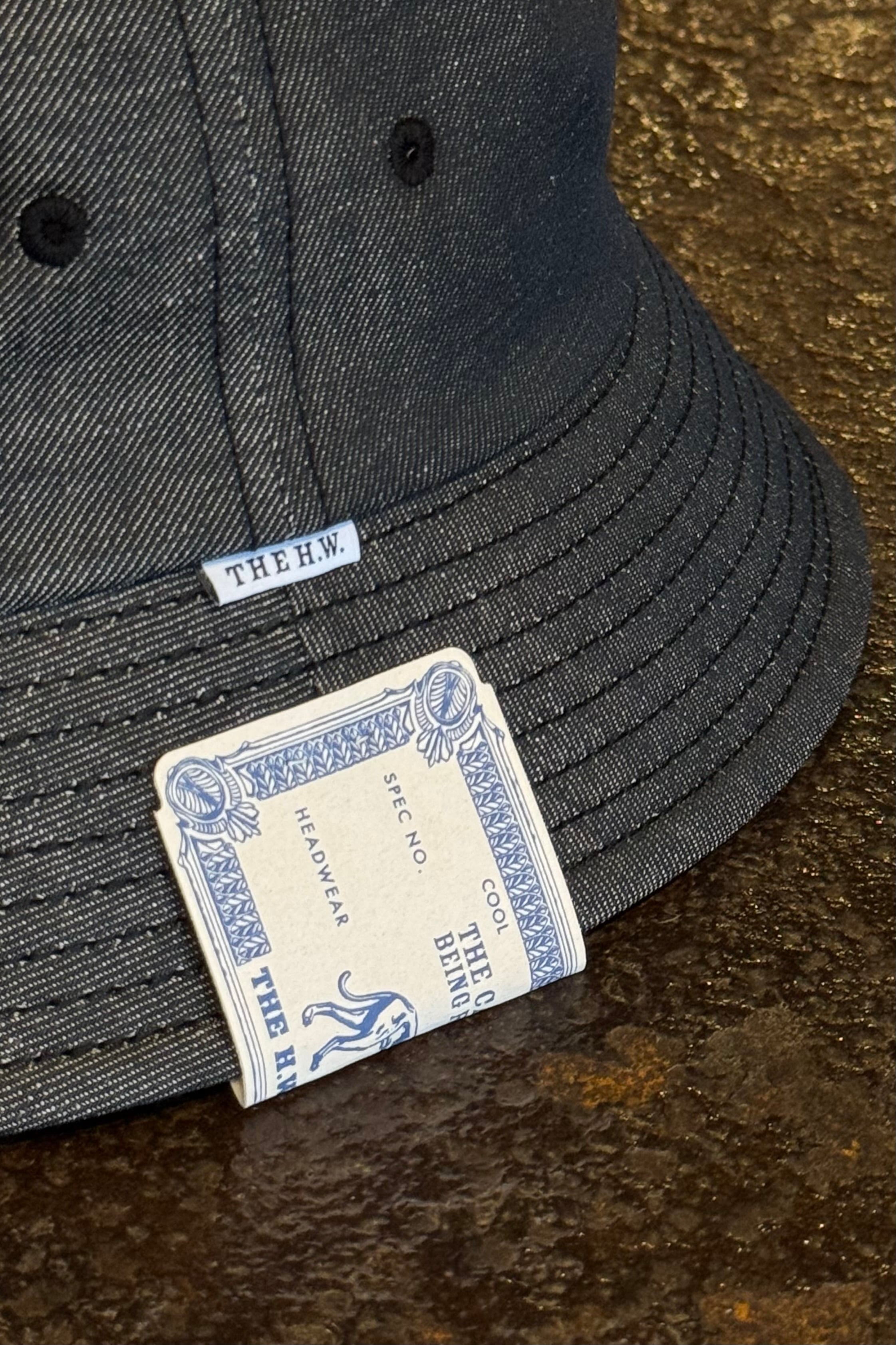 薄手のコットンリネンシャンブレー生地で成形されたバケットハットです。