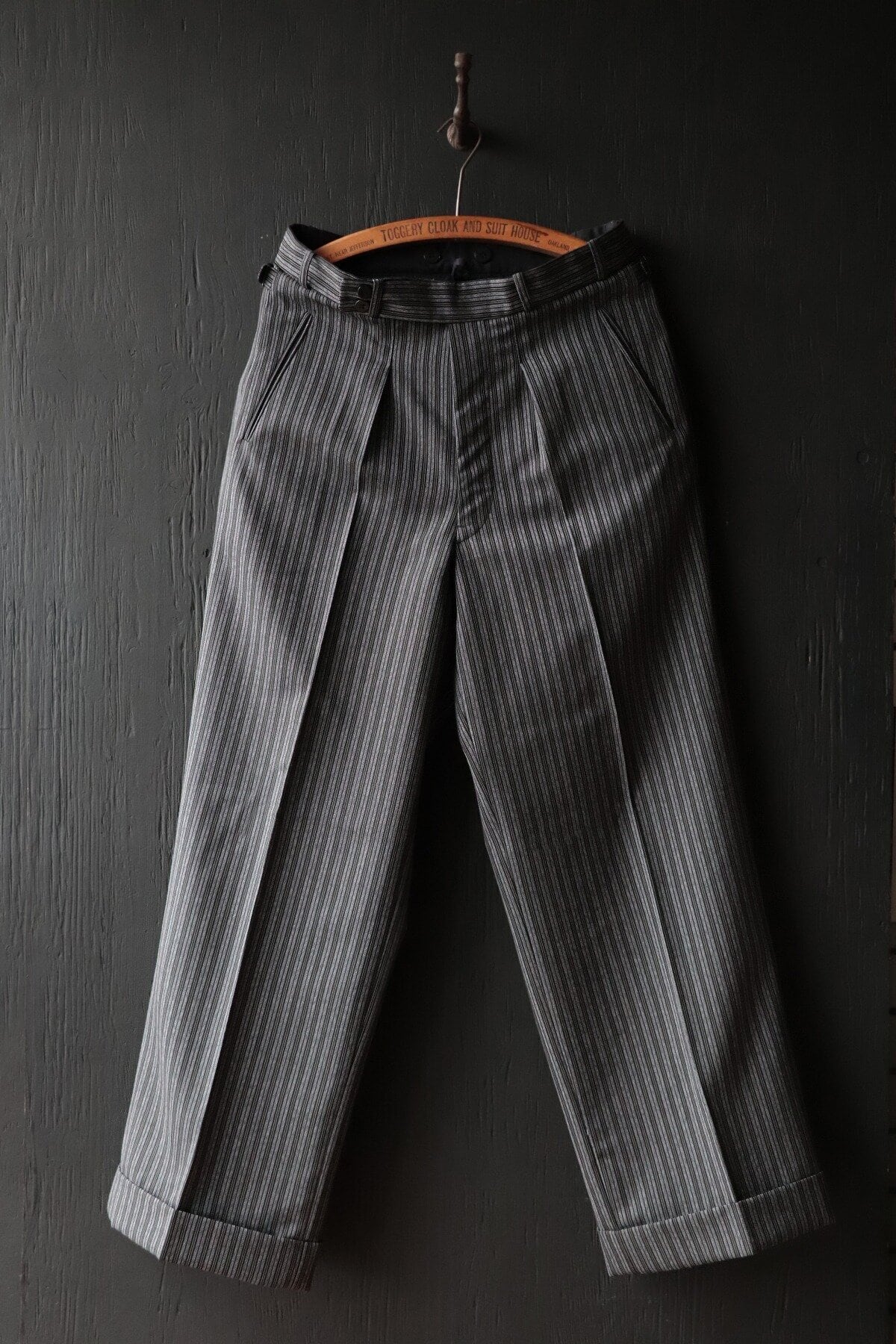 細かなディティールまで忠実に再現した1930年代のハイウェスト・トラウザーズです。