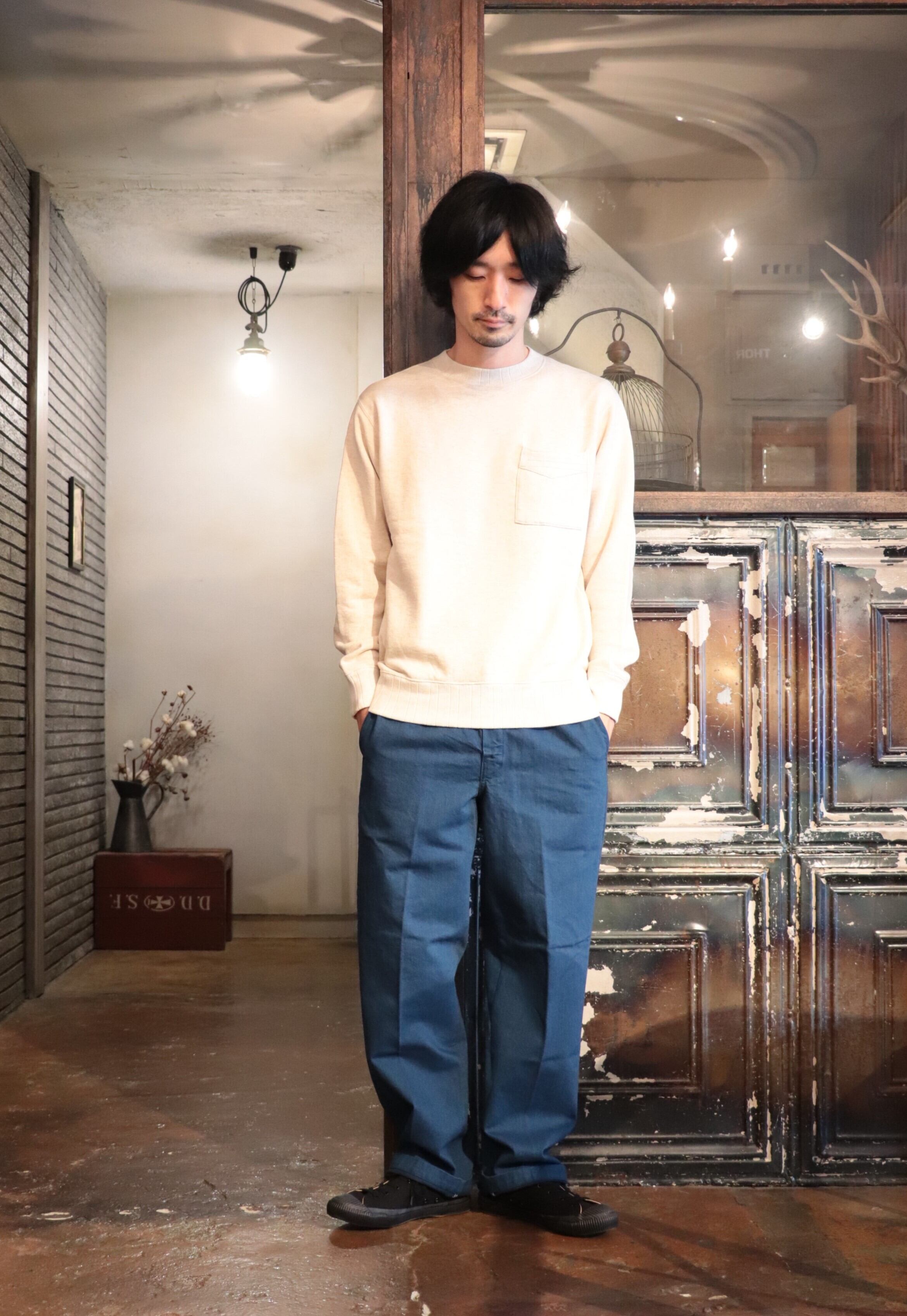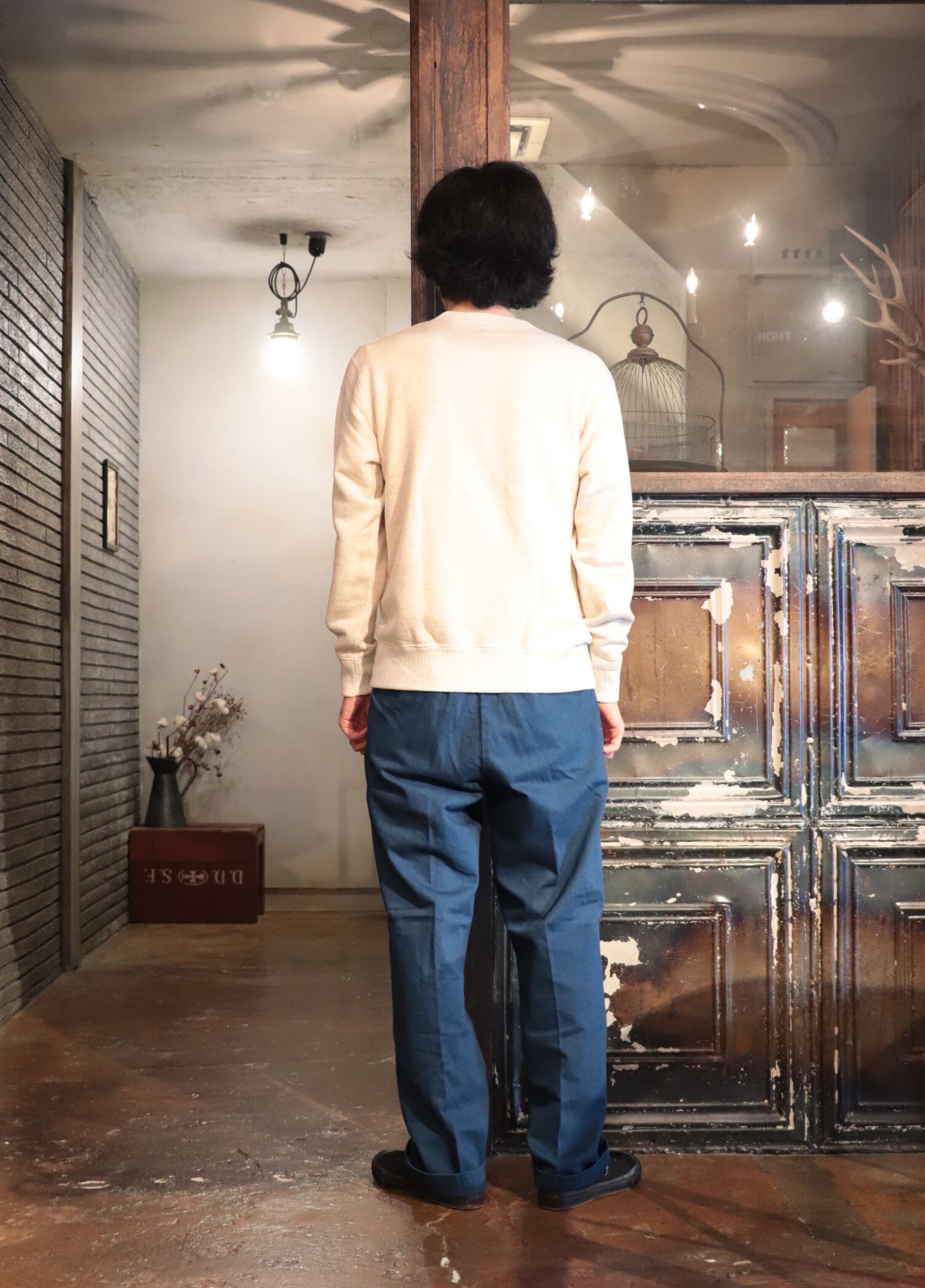 スラックス型はジーンズと違い縫製部分のステッチが殆ど表に出ないため、シンプルな表情ですが、穿き込んだ際の内側のステッチ部分よりダイナミックな表情が出やすいよう糸番手、ステッチ幅等も調整しております。