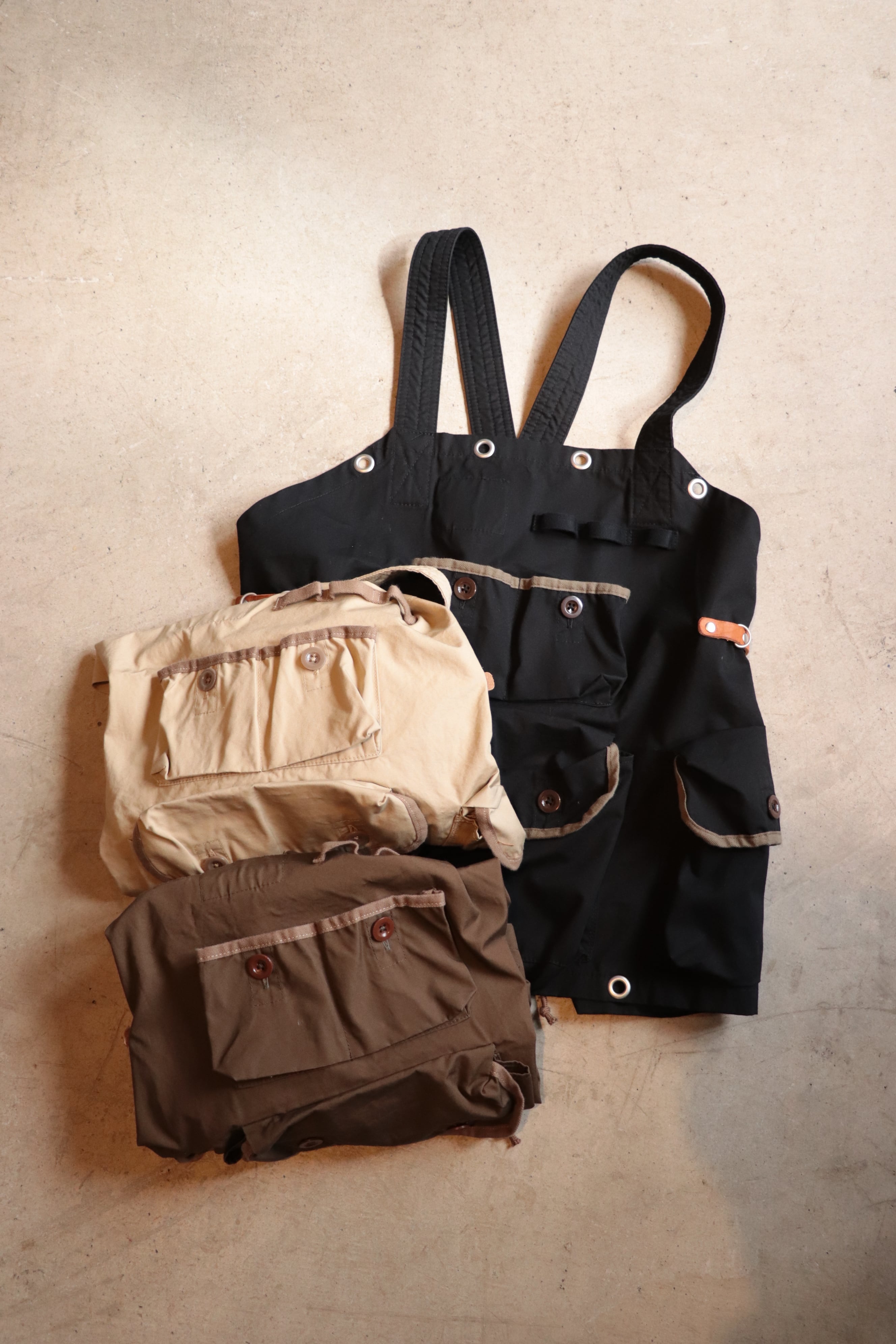 レトロなナップサックのディテールをモチーフに、キャンプやアウトドアで必要なものを沢山持ち歩けるようなイメージで制作されたエクイップメントベストです。