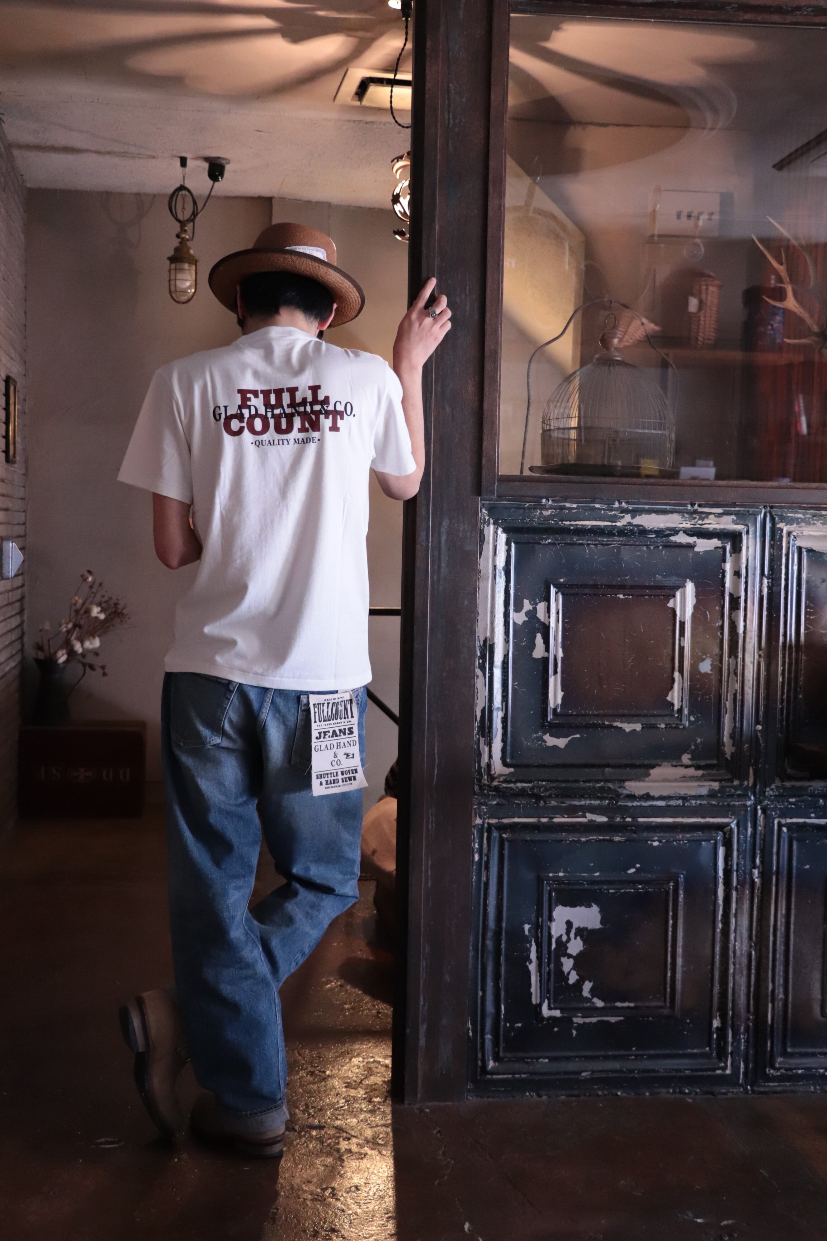 左裾内側にはFULLCOUNTとGLAD HANDのプリントを施し、ロールアップで良いアクセントとなります。