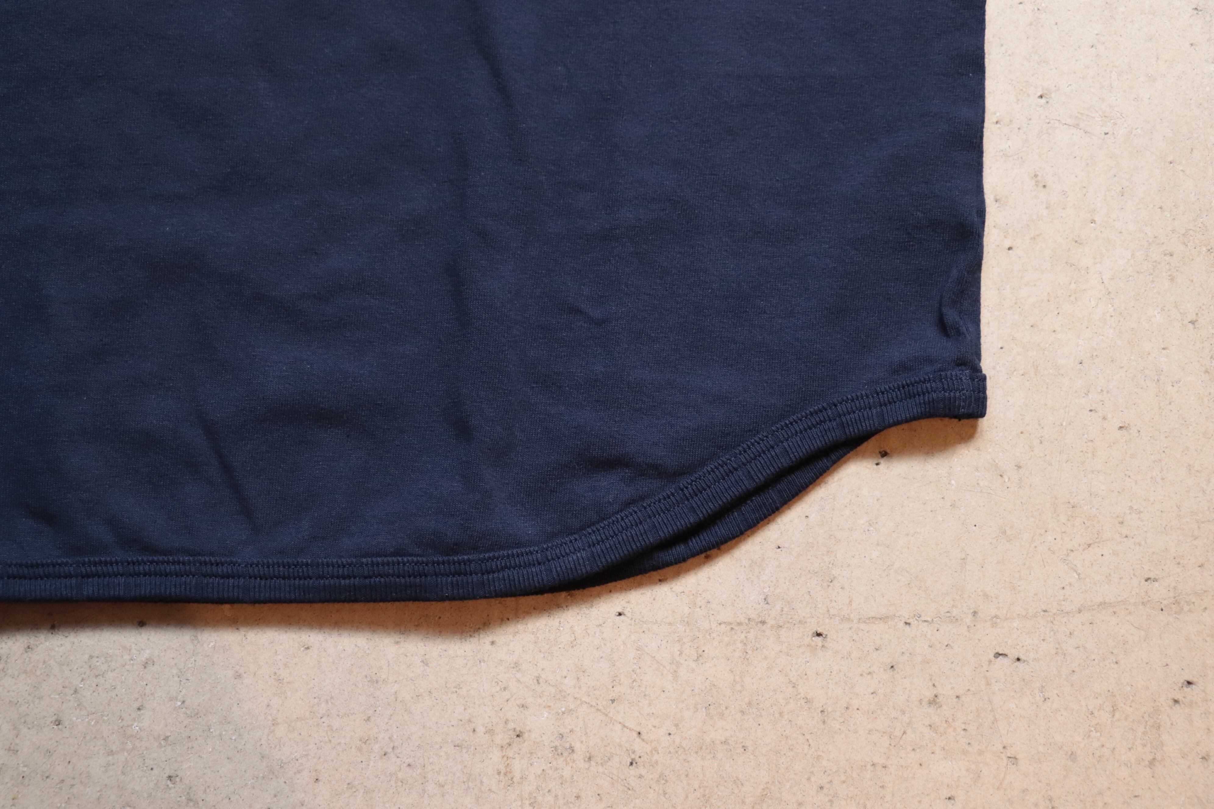 ややゆったりとしたサイズ感で、裾はシャツのようにラウンドしています。