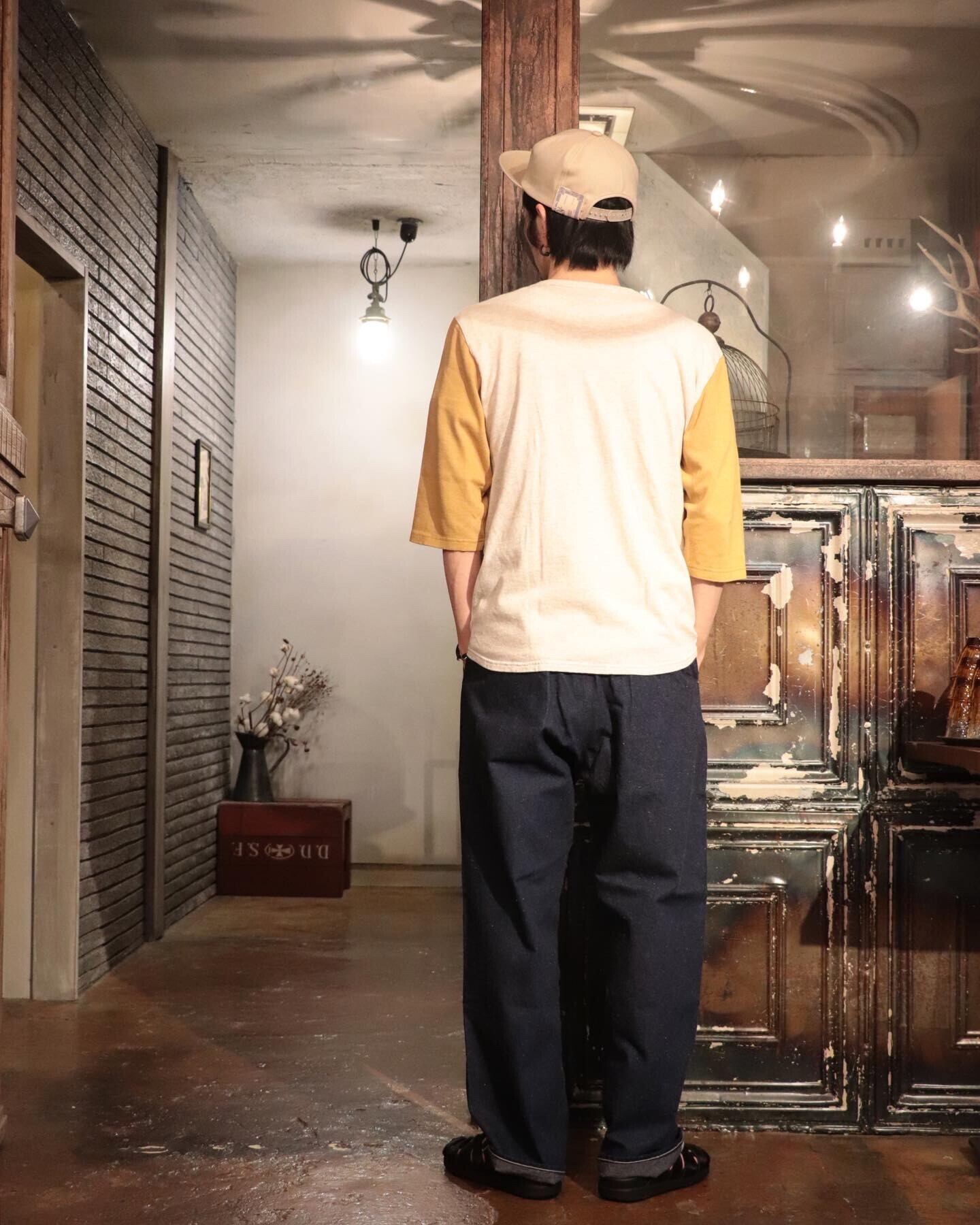 ベース生地の配色、プリントカラー共に古着のような質感も特徴です。