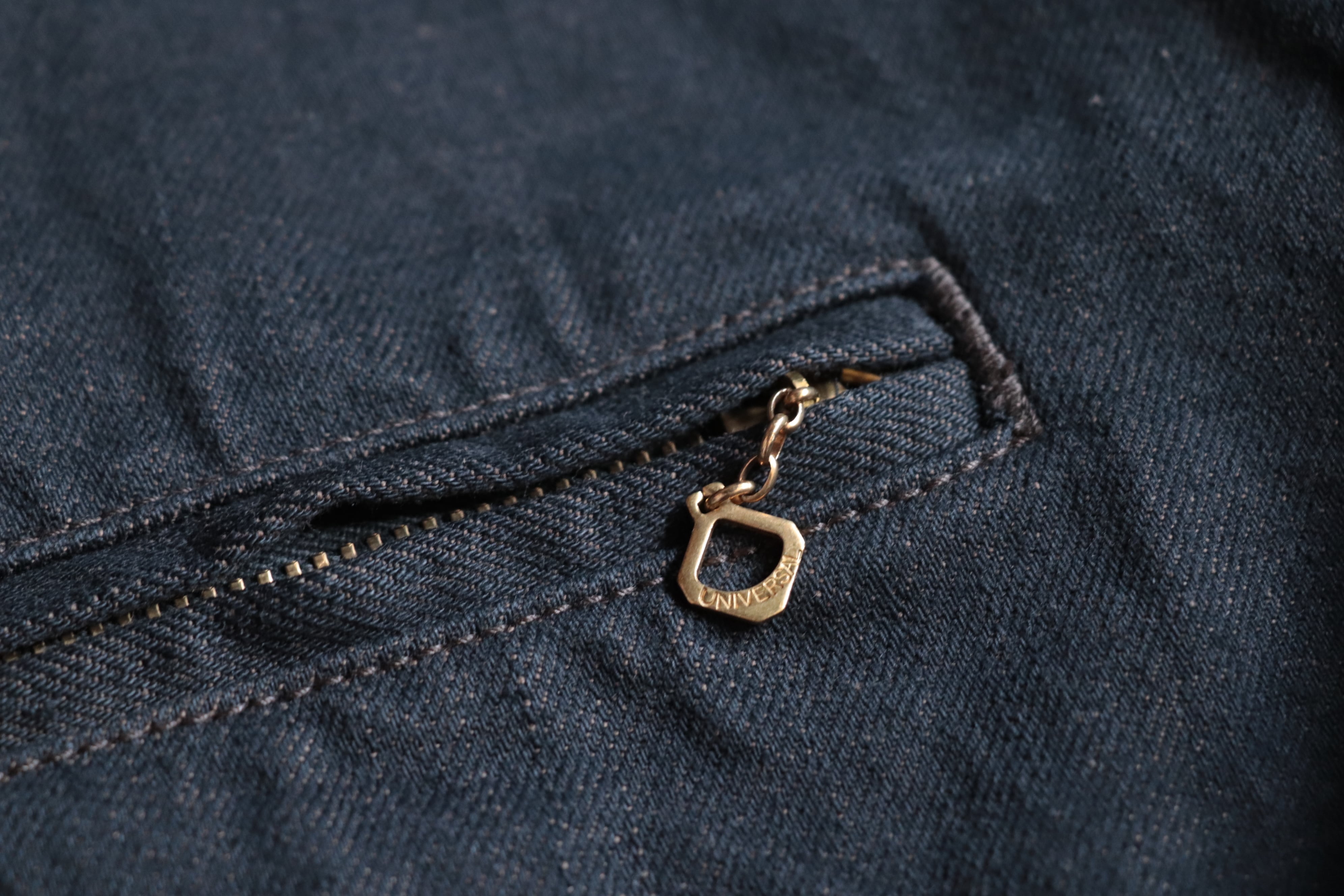 スポーツジャケットタイプのハミングバードジャケットの表地を、オリジナルのブラッキーデニムに置き換え製作したアイテムです。