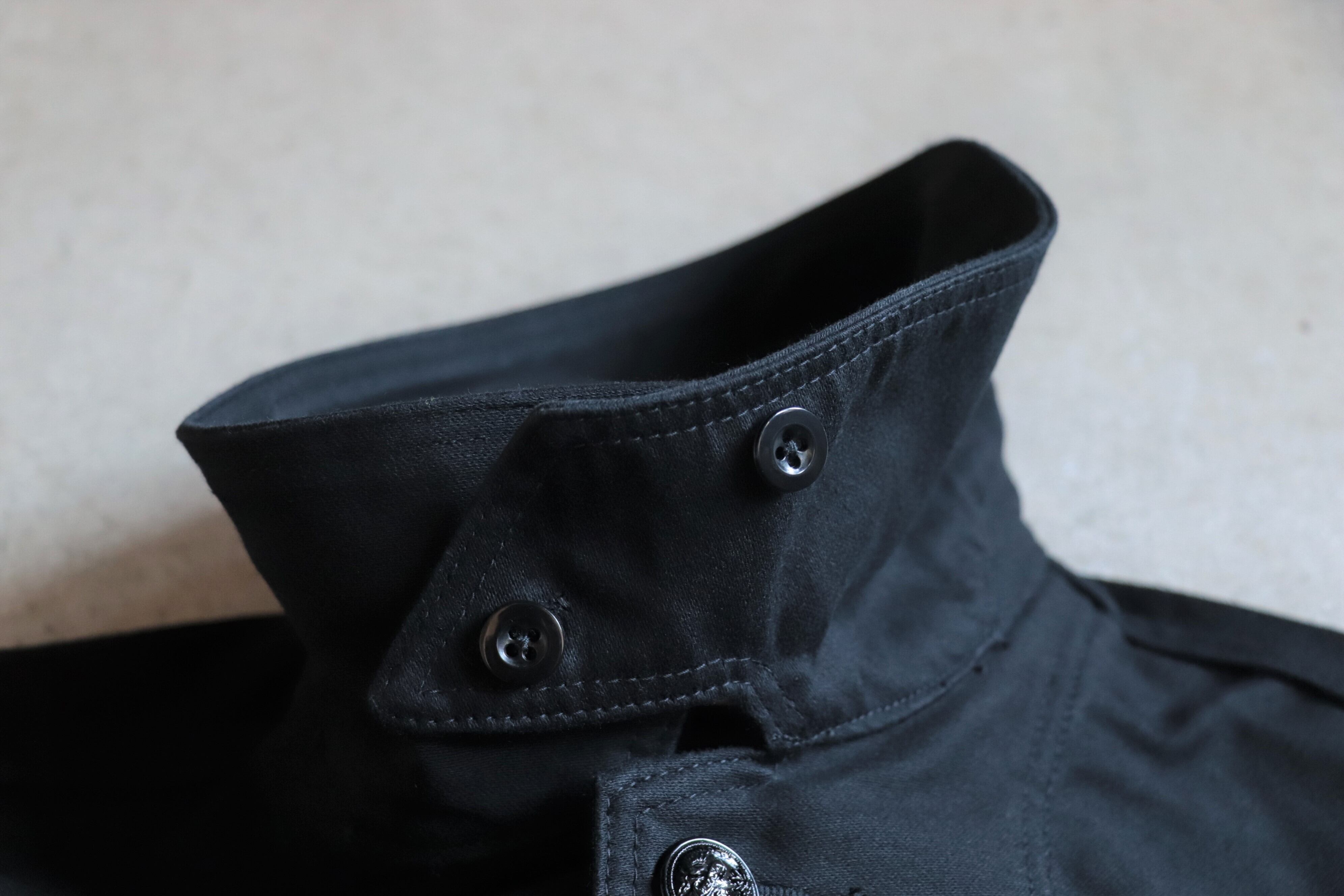 ソースはミリタリージャケットですが、襟はフレンチシャツに見られるディテールを取り入れています。