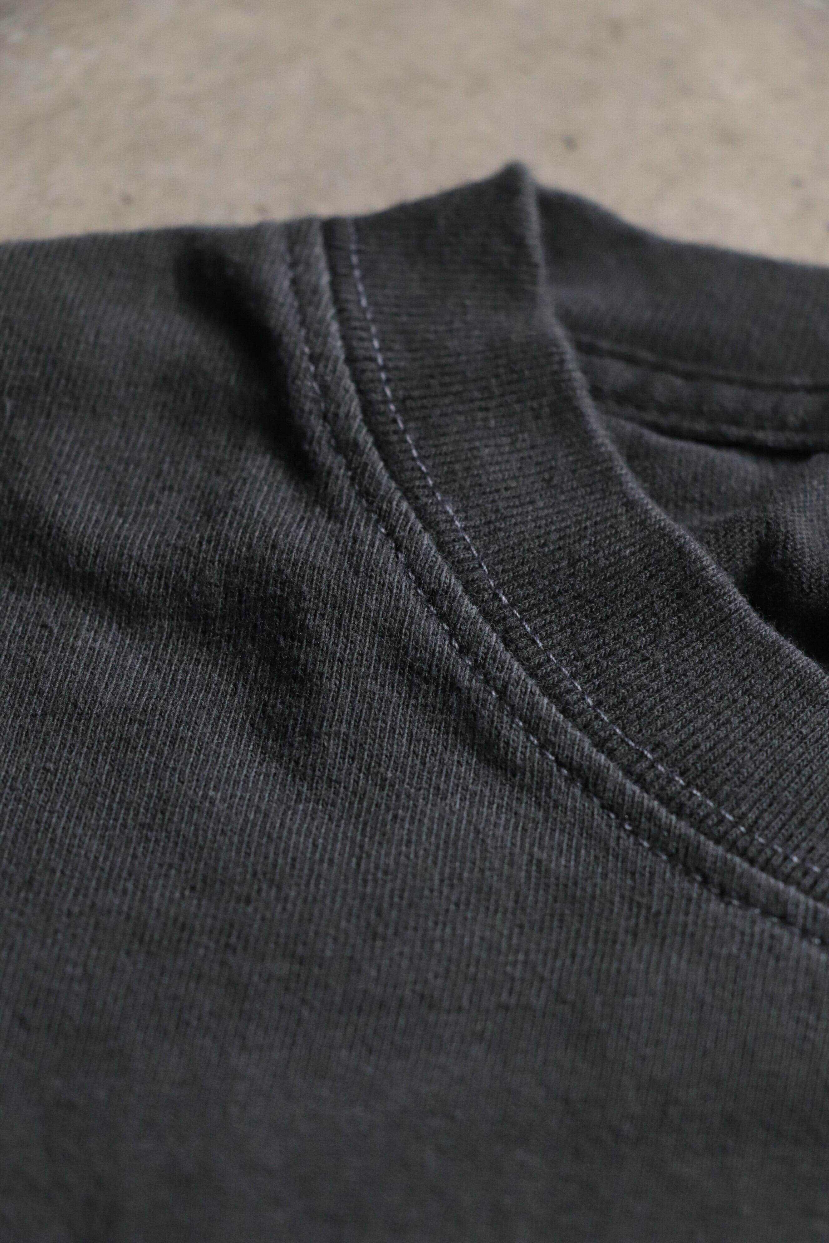 生地に顔料染めを施すことにより、ブラックはややまだらな印象に、ホワイトも真っ白ではなく、少し色むらのある雰囲気に仕上がっております。