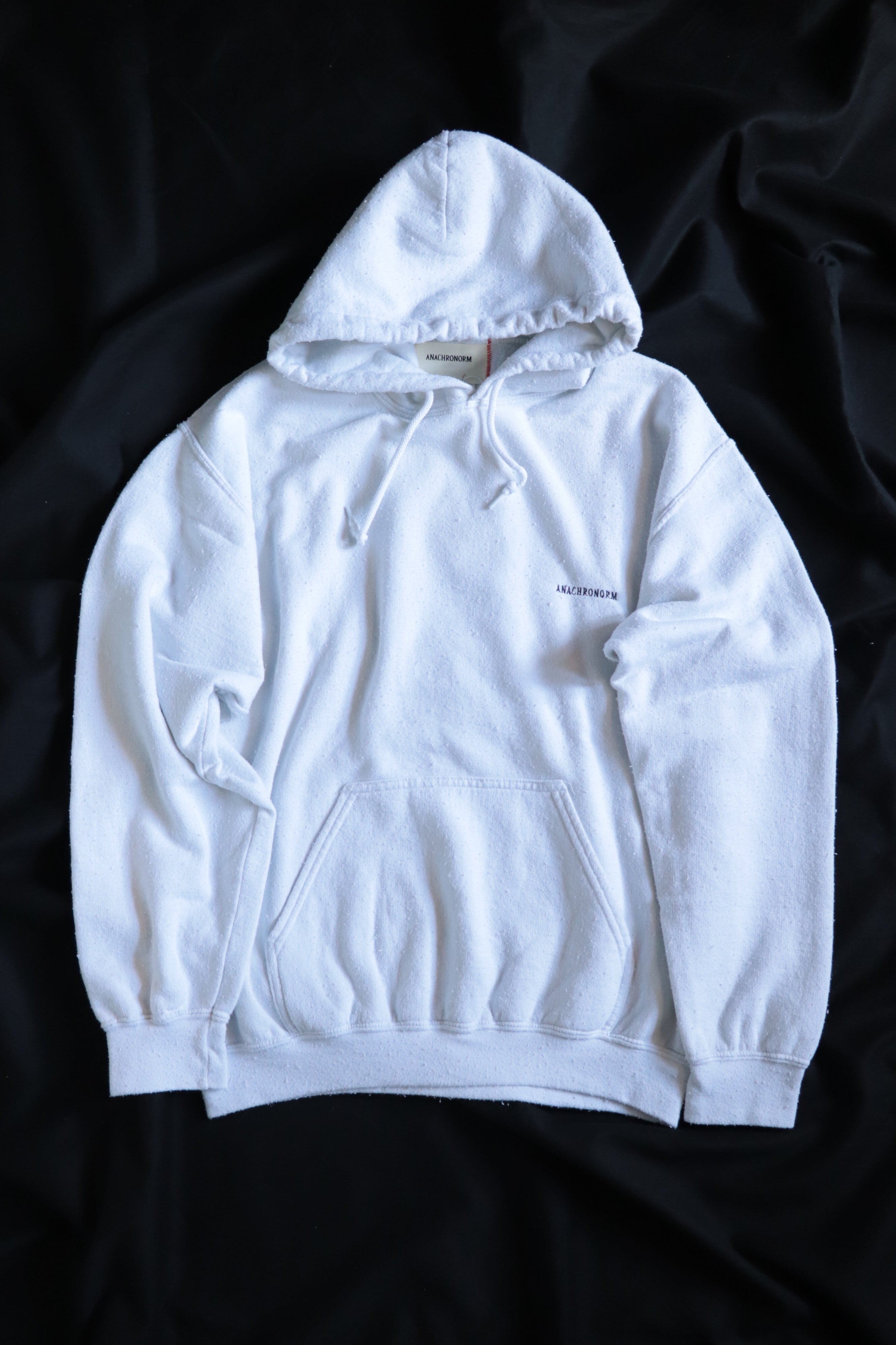 ナッピング加工(毛玉加工)を施し、あえてチープな雰囲気に制作されたパーカーです。