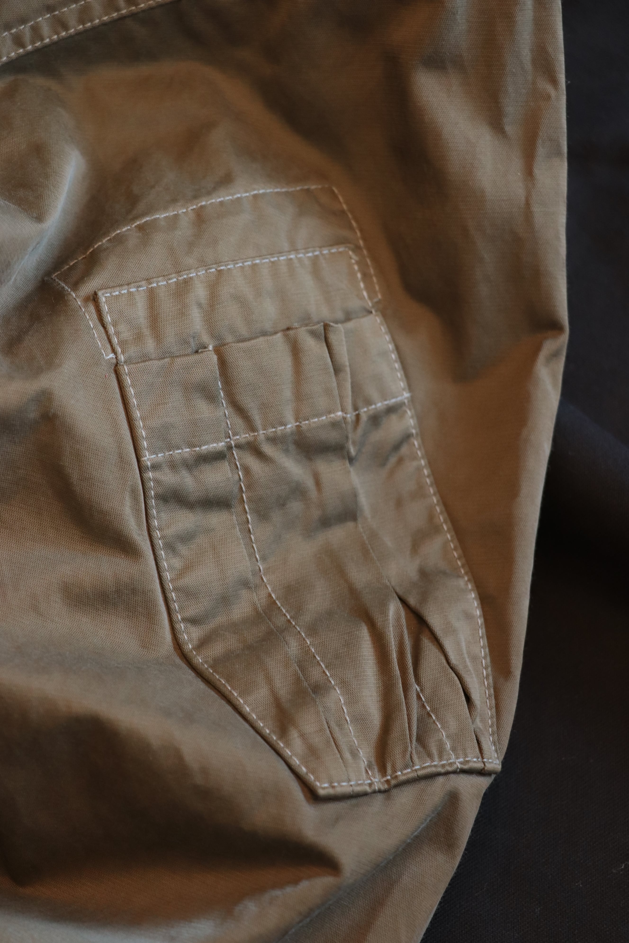 ナイロンとコットンの微妙な染色の違いによる特有の半光沢とハリコシのある生地感もたまりません。
