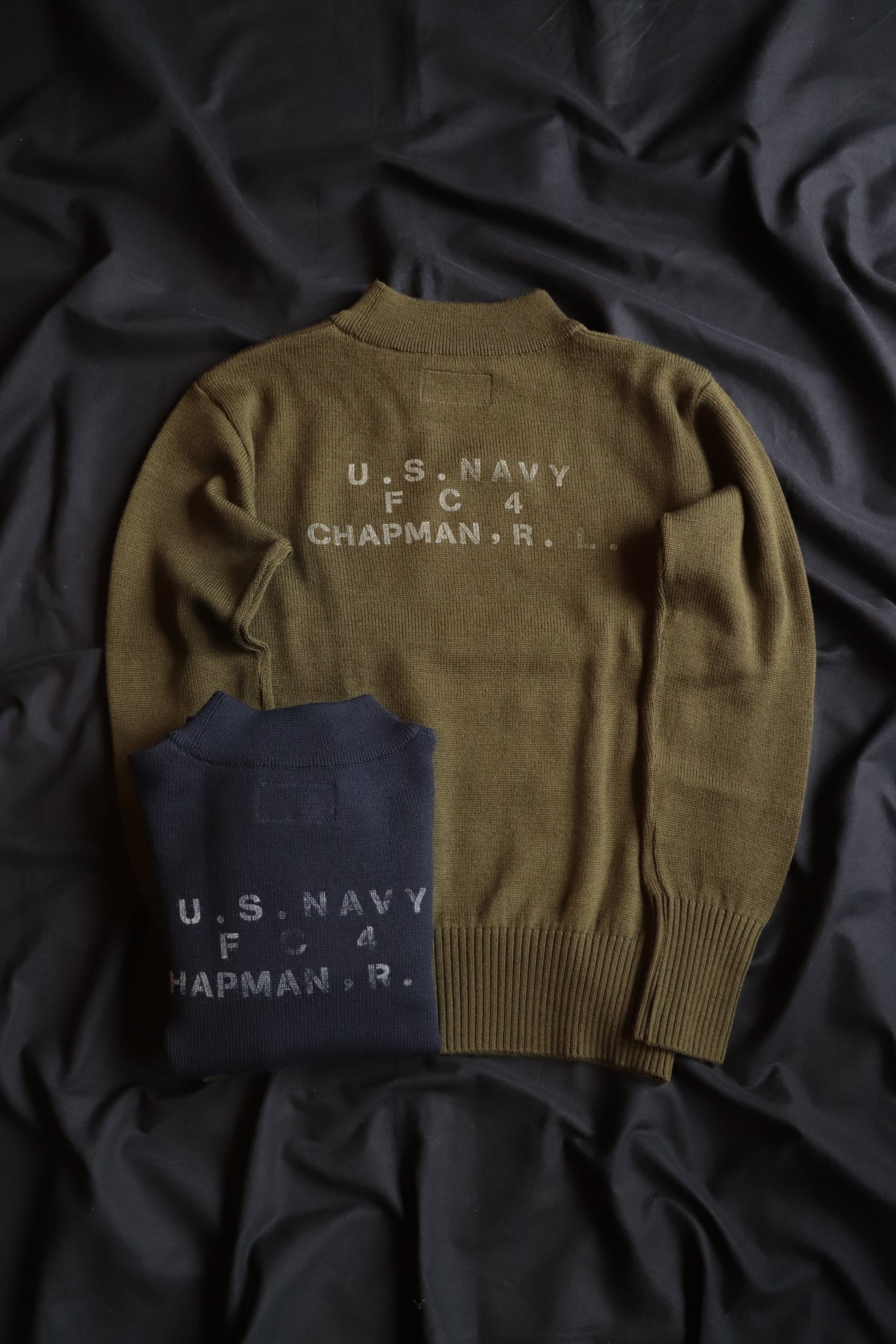 ゴブセーターとは目の詰まったウール生地とハイネックが特徴的なUS NAVYのセーターです。