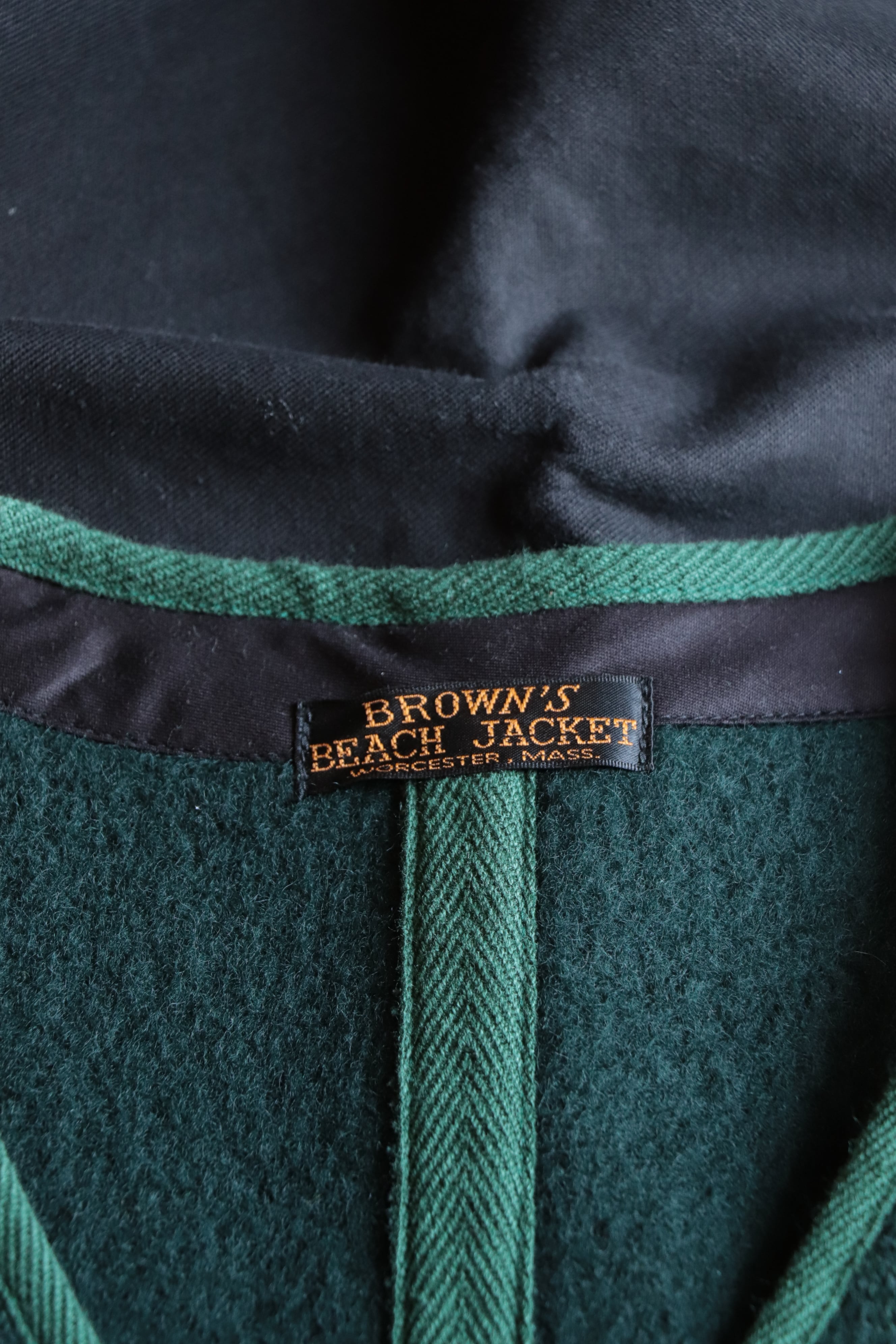 ブラウンズビーチとは、100年以上も昔、アウトドアマンの為に開発されたこの素材は表面のコットン編み物(ラッセル編み)と裏面のウールフリースの2層構造となっており、いわばスウェットと同じ構造となっております。