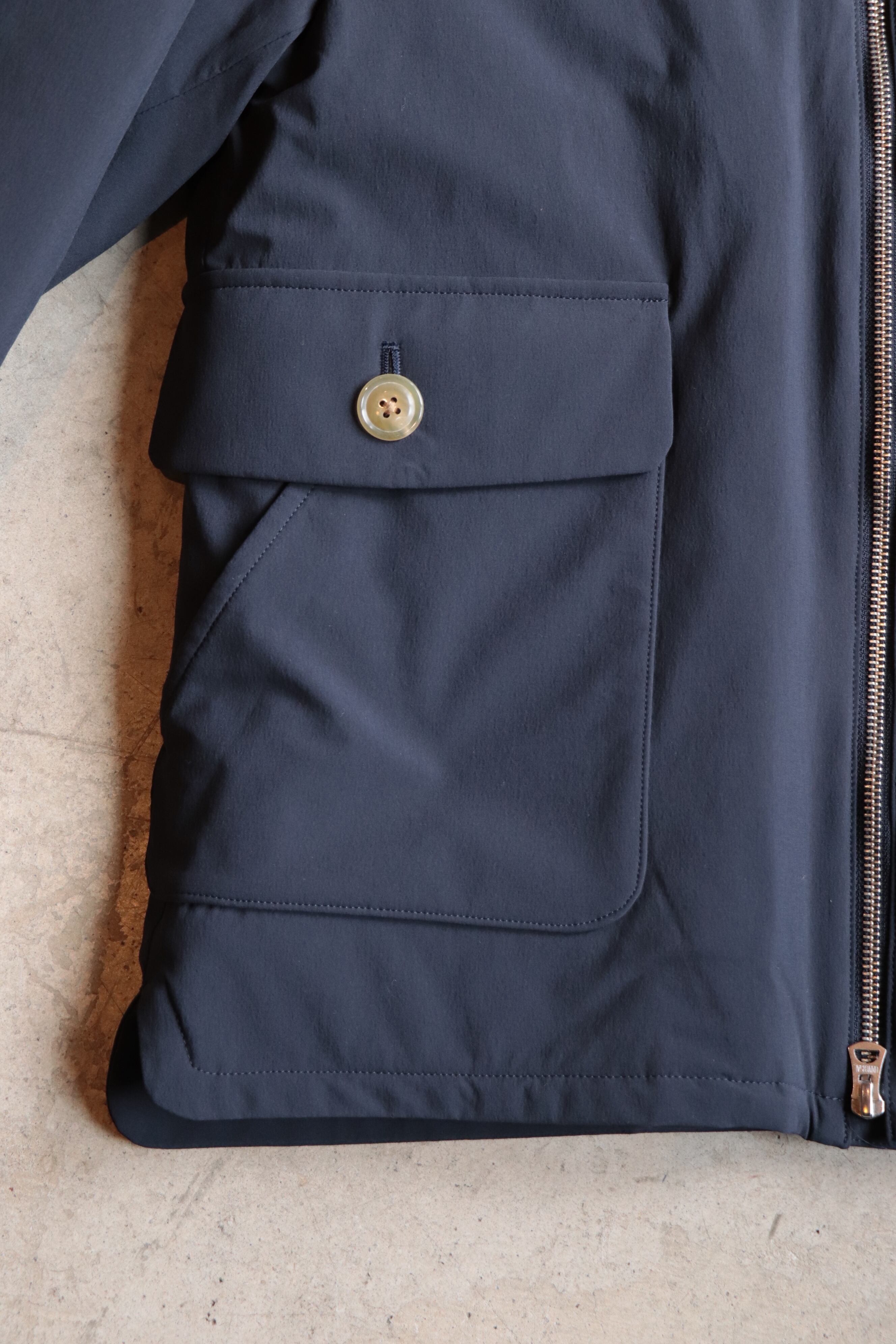 表地にはストレッチナイロンを使用し、中にしっかりと着こんでも、全くストレスのない着心地となっております。
