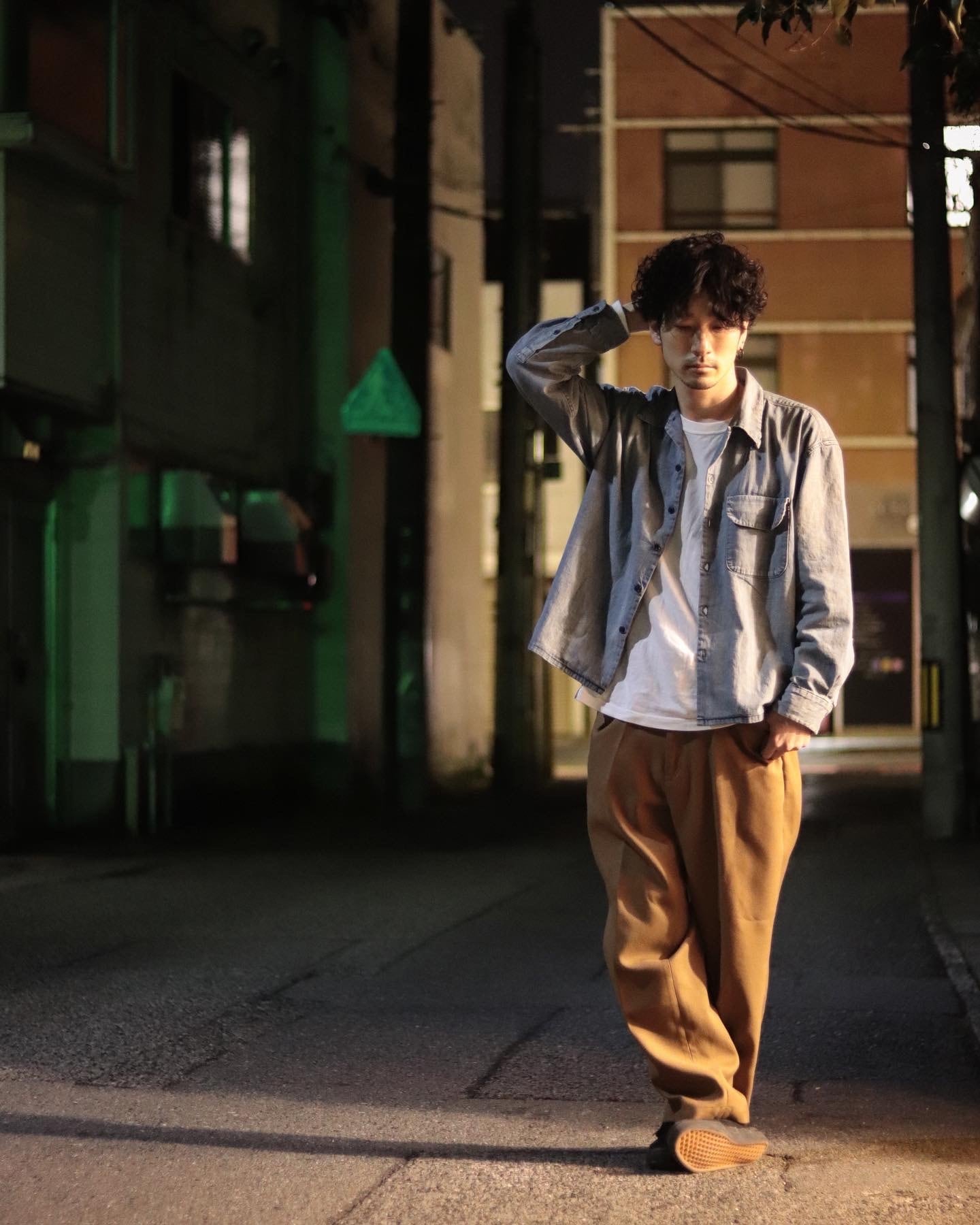 ANACHRONORM/アナクロノーム DENIM TUCK OPEN COLLAR SHIRT Lt.INDIGO AN109-W1