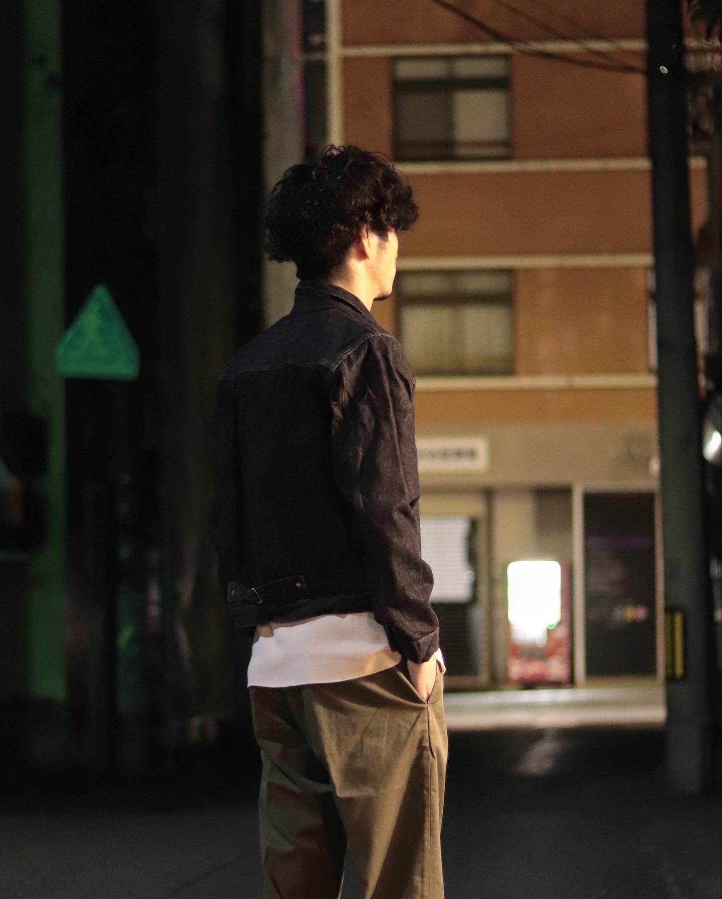 定番の1stタイプ、2107型をベースに肩幅から裾にかけてややゆとりあるシルエットにしアームホールにもゆとりを持たせています。