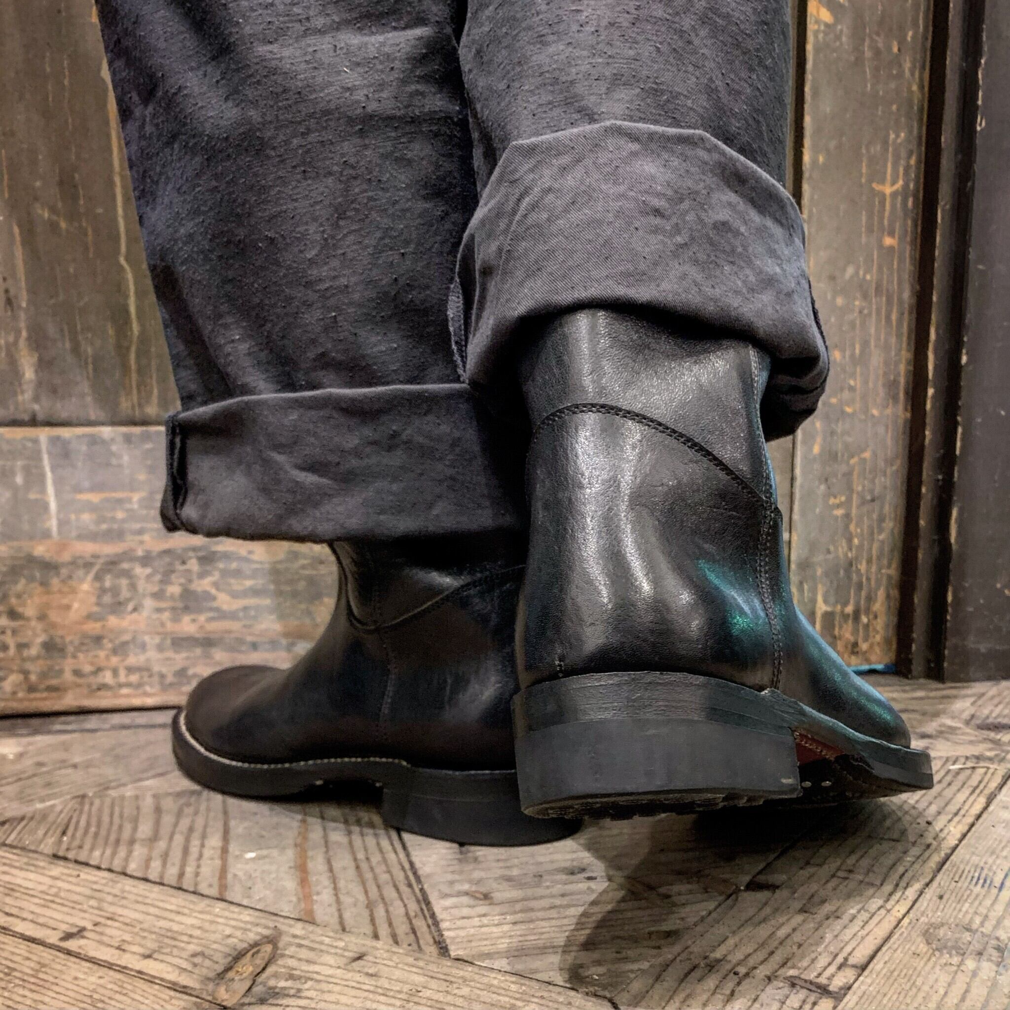 FINE CREEK LEATHERSの銘品カーコート、ギルモアの革を使用して、製作されたローパーブーツです。