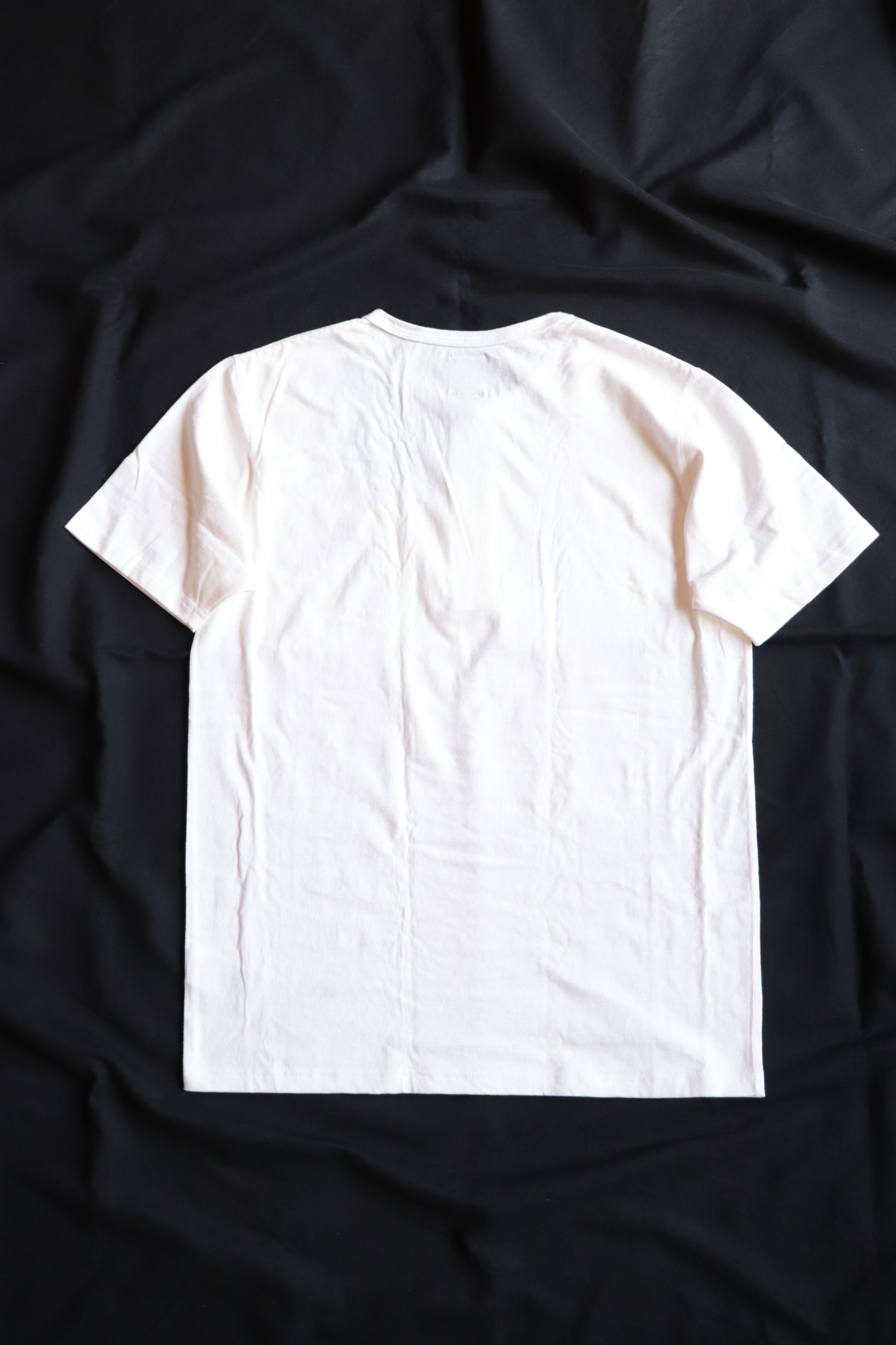 染め、洗い等をしておらず、天竺の生地の編立て状態から着用、洗濯を繰り返すごとに生地が持つ独特な風合いが出てきます。
