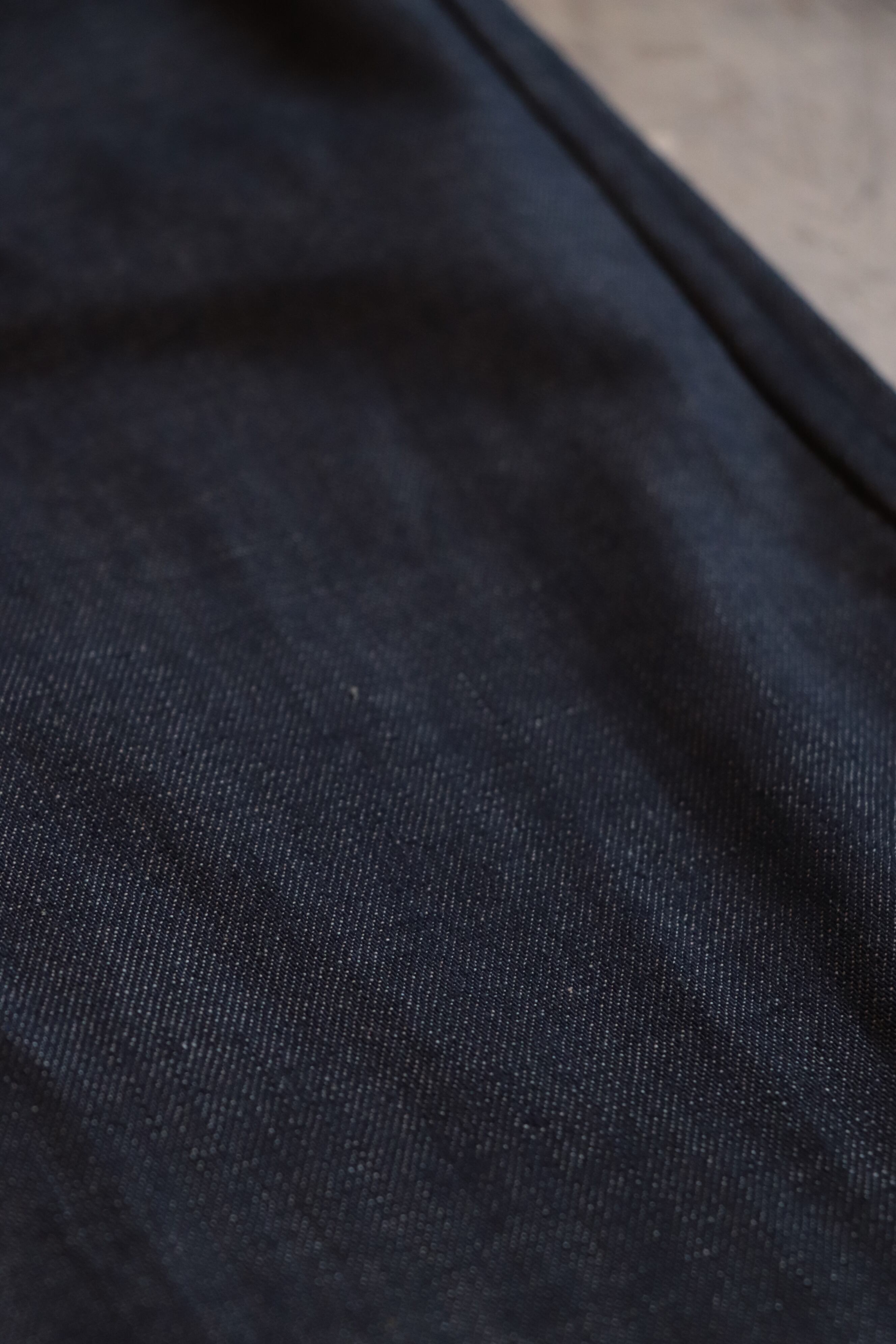 こちらの製品はリジッド(未洗い)のため、少し硬さとハリのある質感ですが、洗いこむごとに風合いは柔らかく変化し、経年変化もお楽しみいただけます。