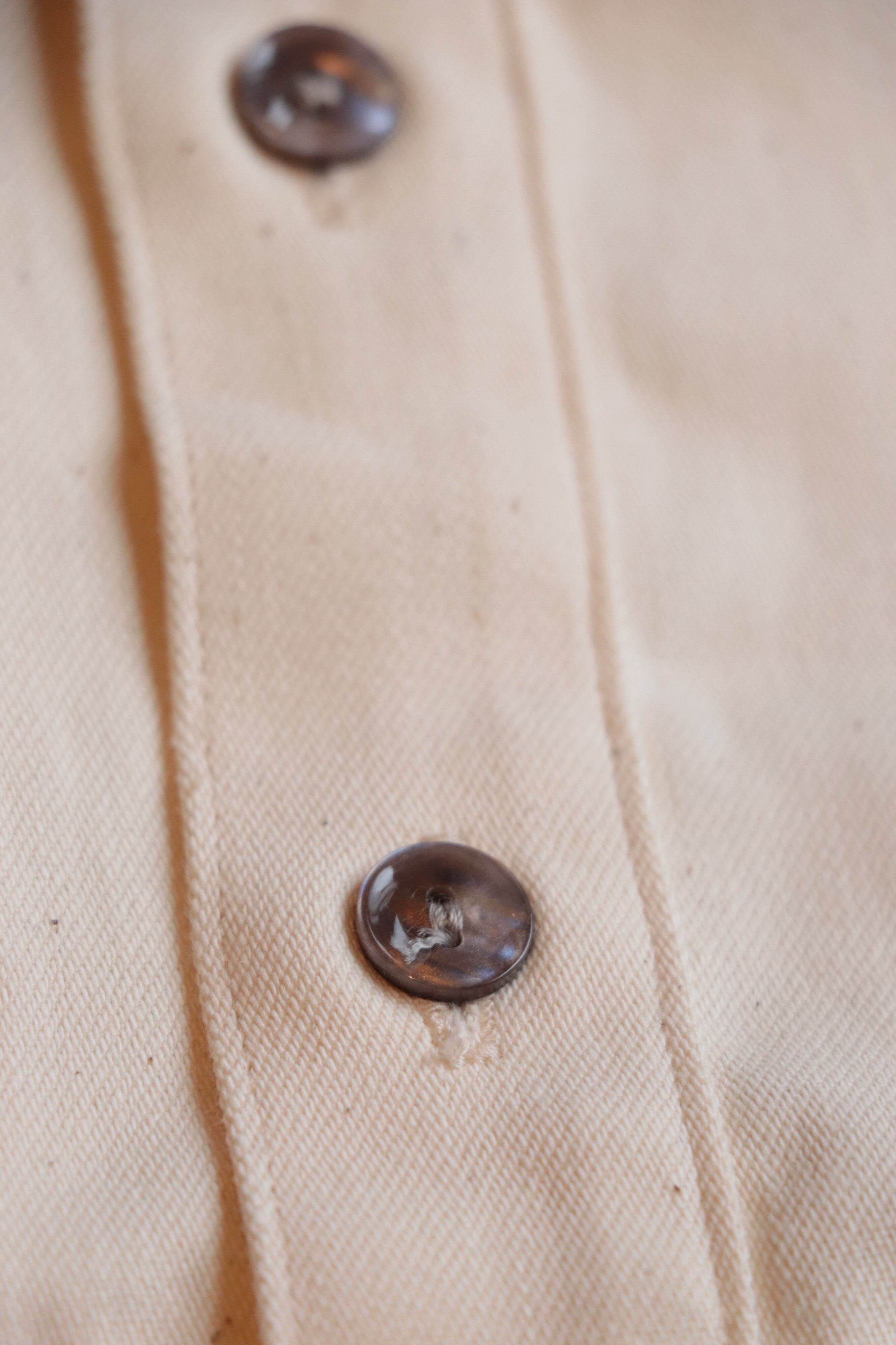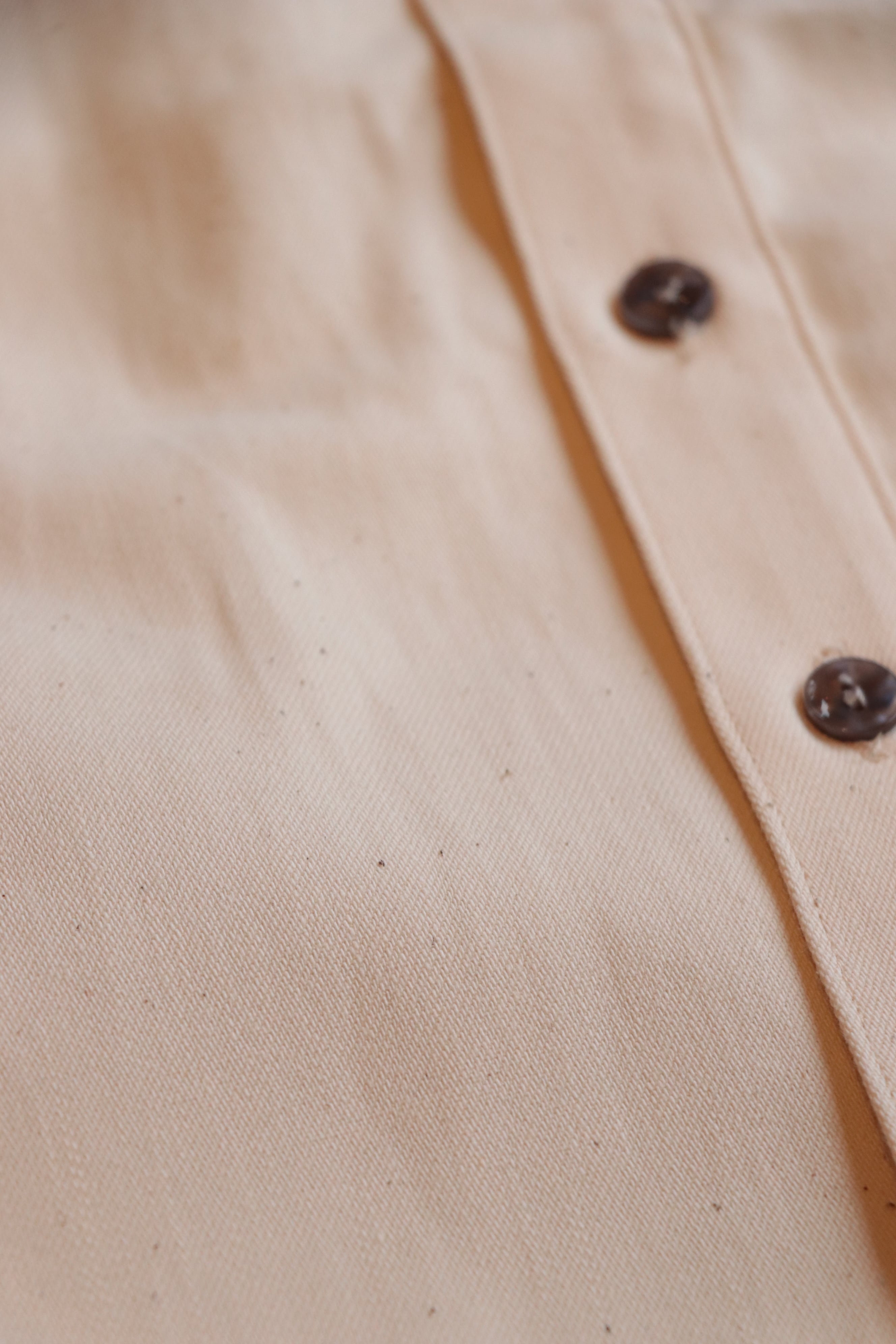 リジッド(未洗い)の製品の為、初回のお洗濯で若干の縮みがありますが、縮みを考慮し、やや大きめなサイジングに仕上げられています。