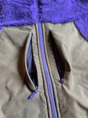 首まわり部分からフード部分、袖下にはボアの潰れや擦れ、 防風,雨対策としてダブルクロスストレッチ生地で補強、 袖口はリブになってるので程よいフィット感もあります。