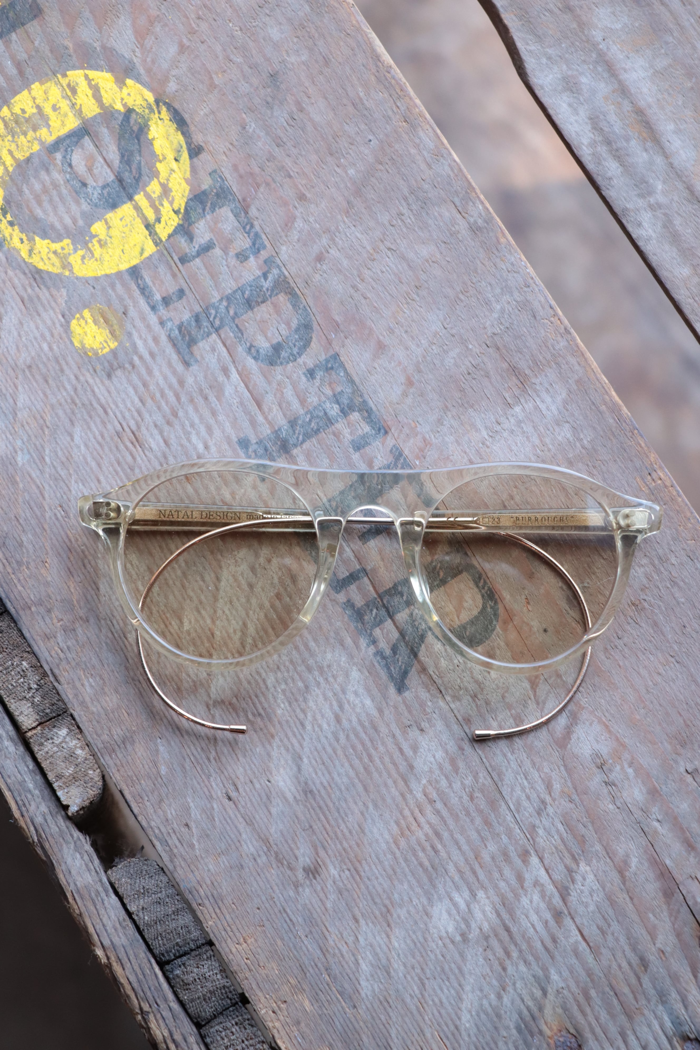 良質なゴールドカラーの縄手のケーブルテンプルにセフティーゴーグル特有の目の保護のためラウンド幅が大きいデザインは現代のシーンにマッチするユニークさのあるフレームシルエット。