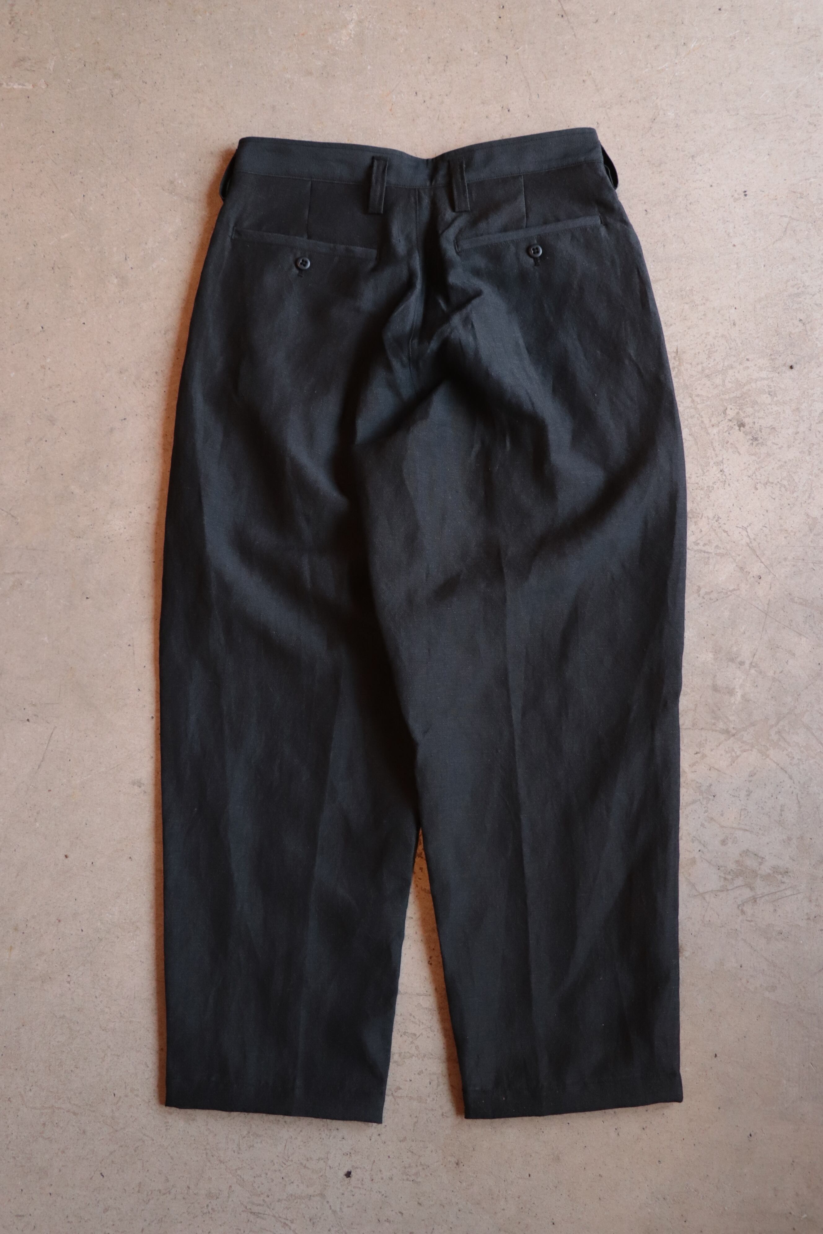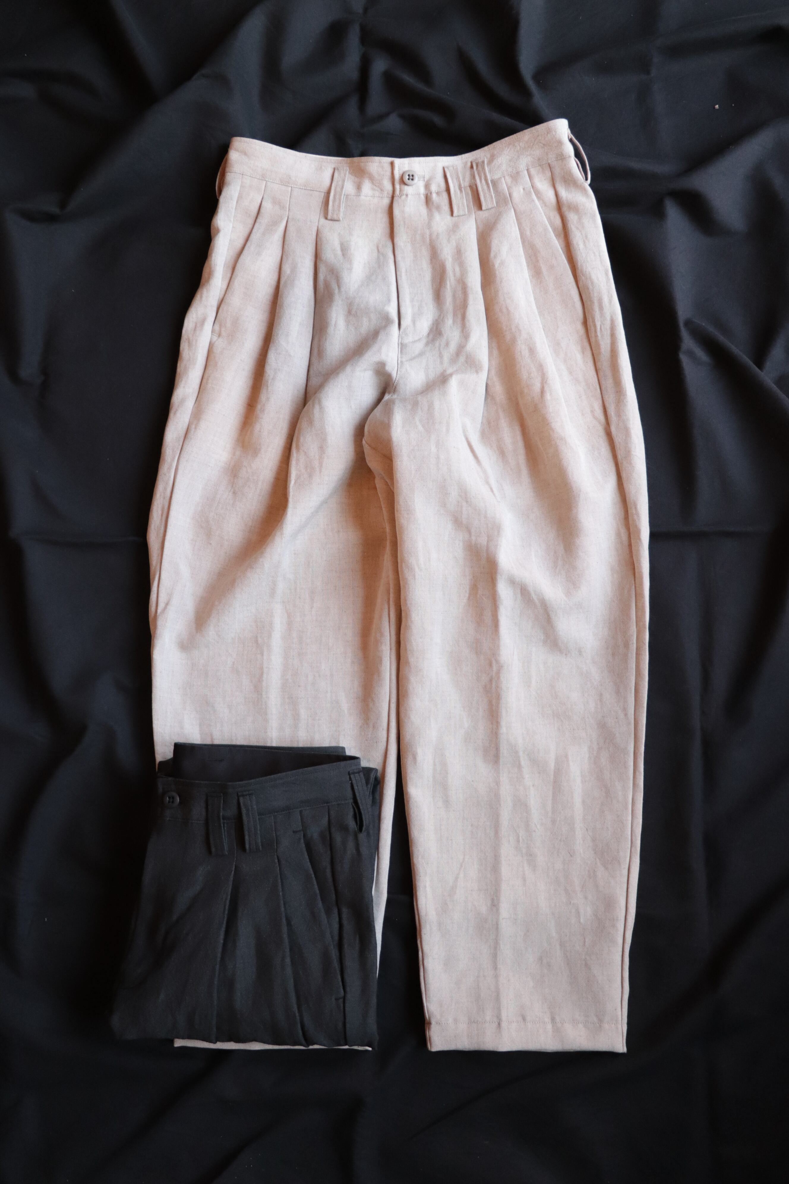 ウエストにタックが入ったワイドなシルエットで、裾にかけて程よくテーパードがかかっています。