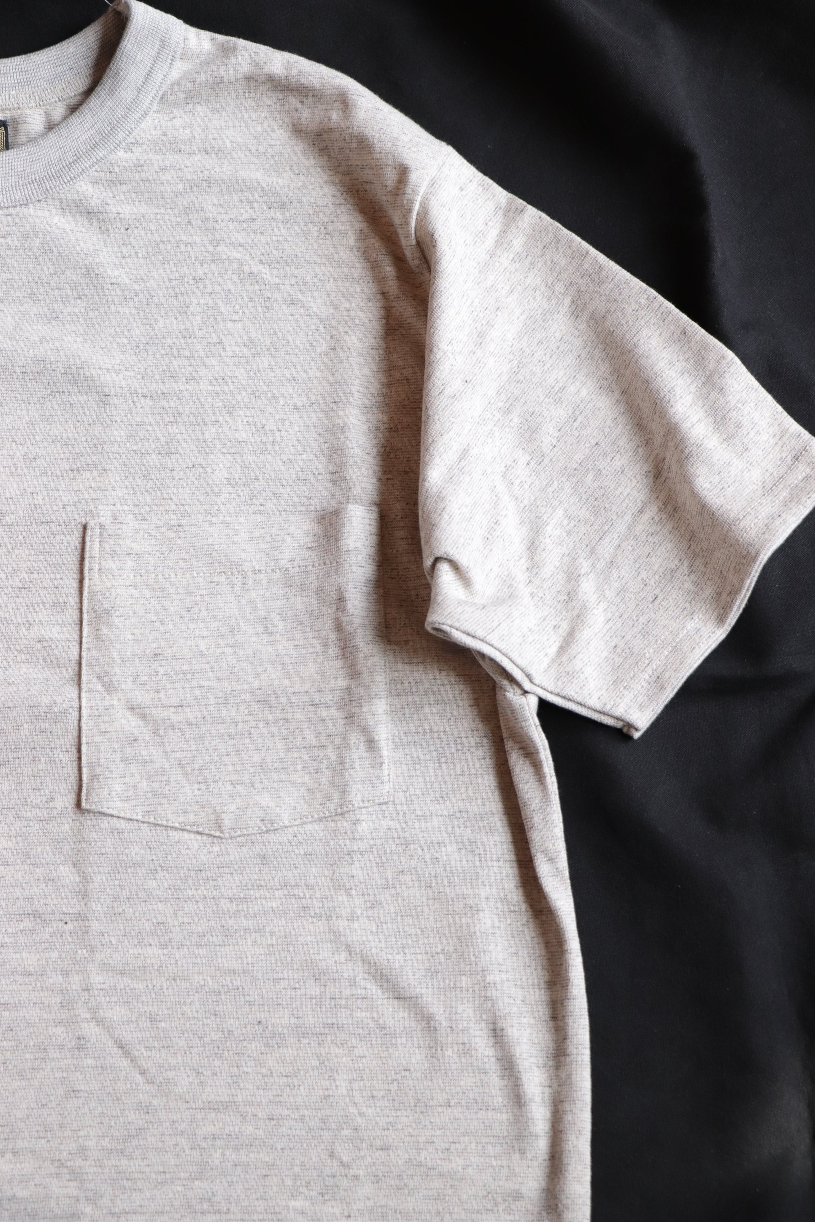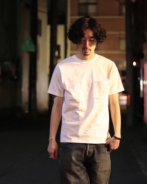 染めや洗いなどをしていない製品の為、天竺生地の編み立て状態から着用、洗濯を繰り返すことで、生地が持つ独特な風合いが出てきます。