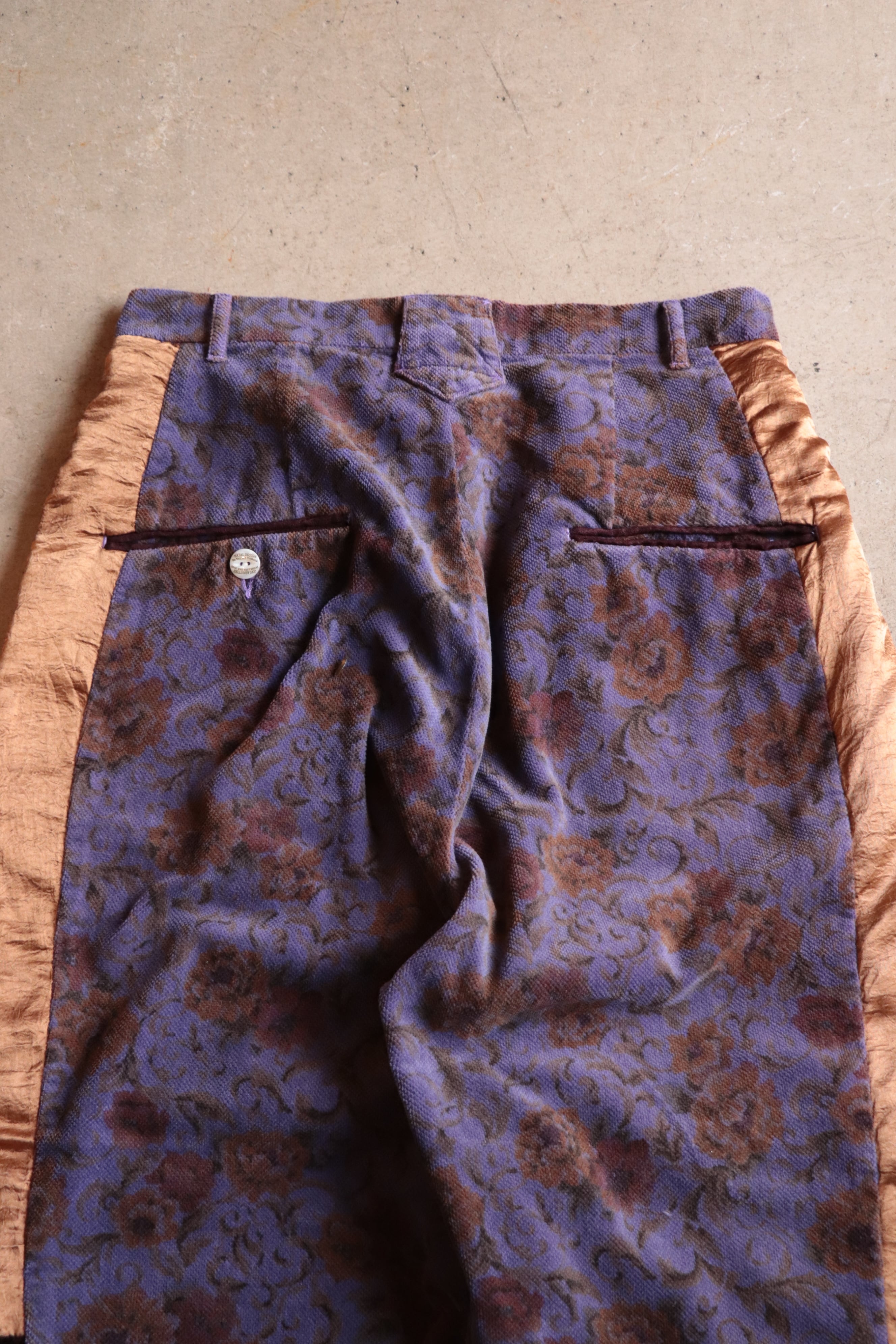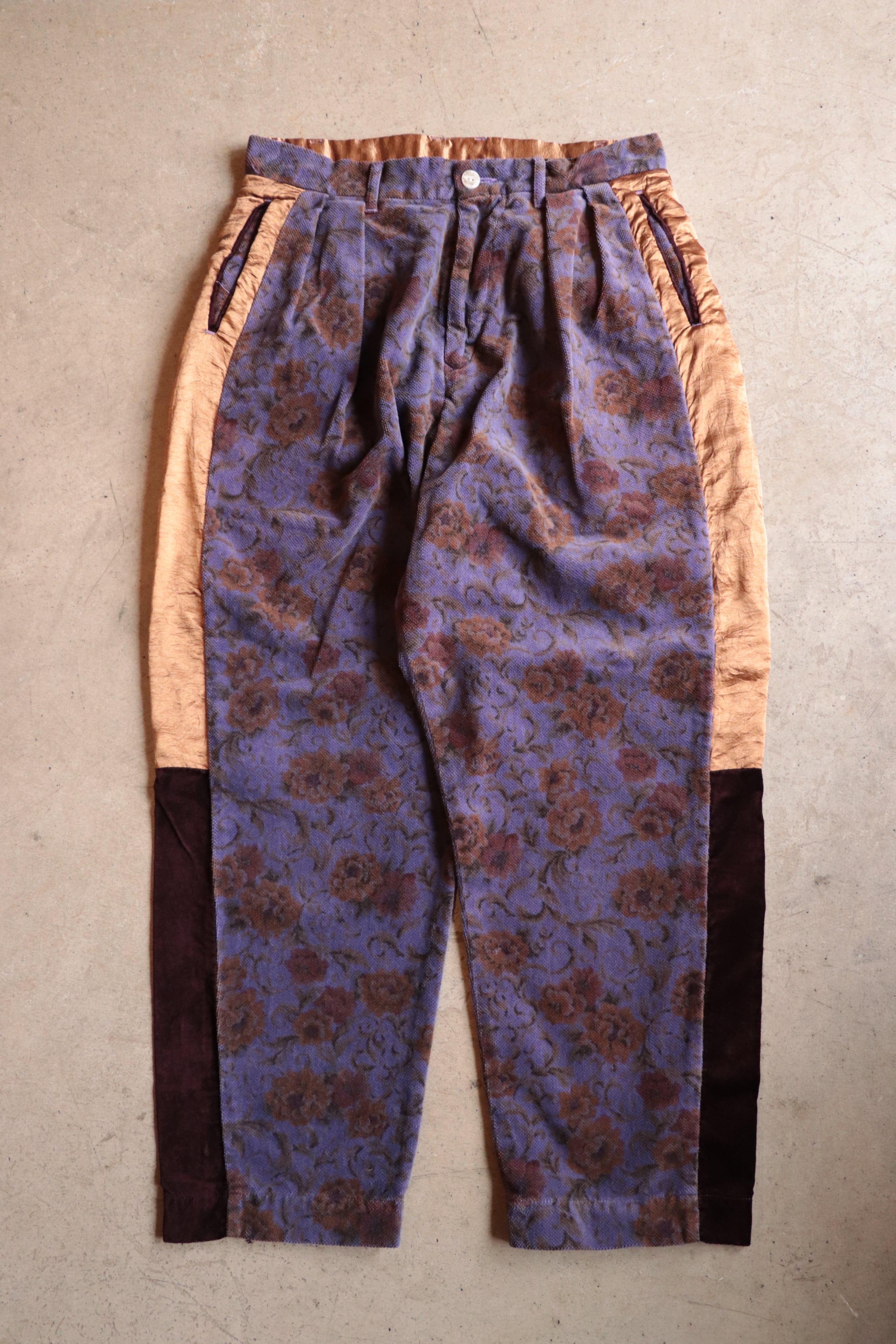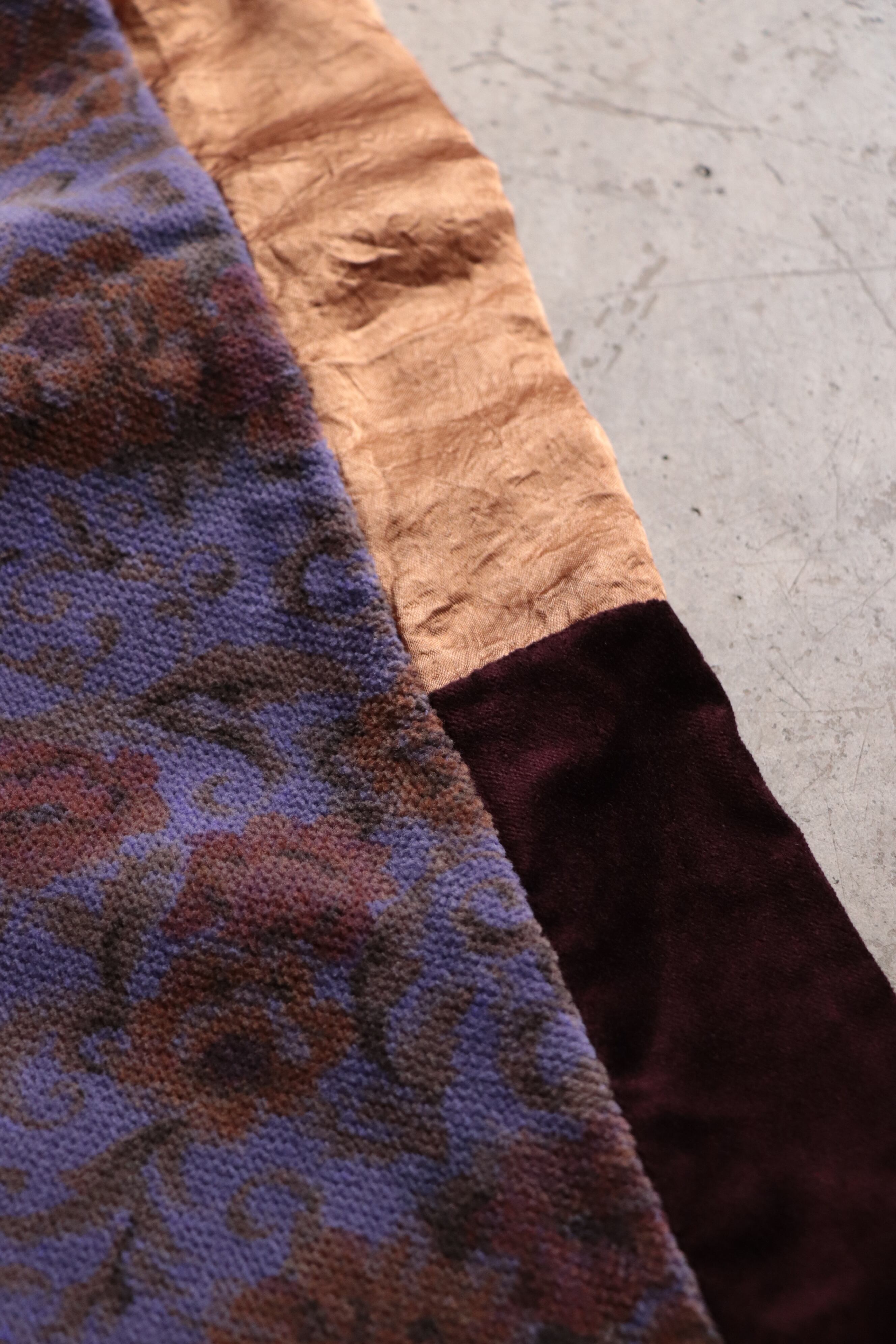 トーンの落ち着いたカラーリングのゴシックフラワープリントが印象的な後染めライスコードファブリックを採用することで上品な印象となります。