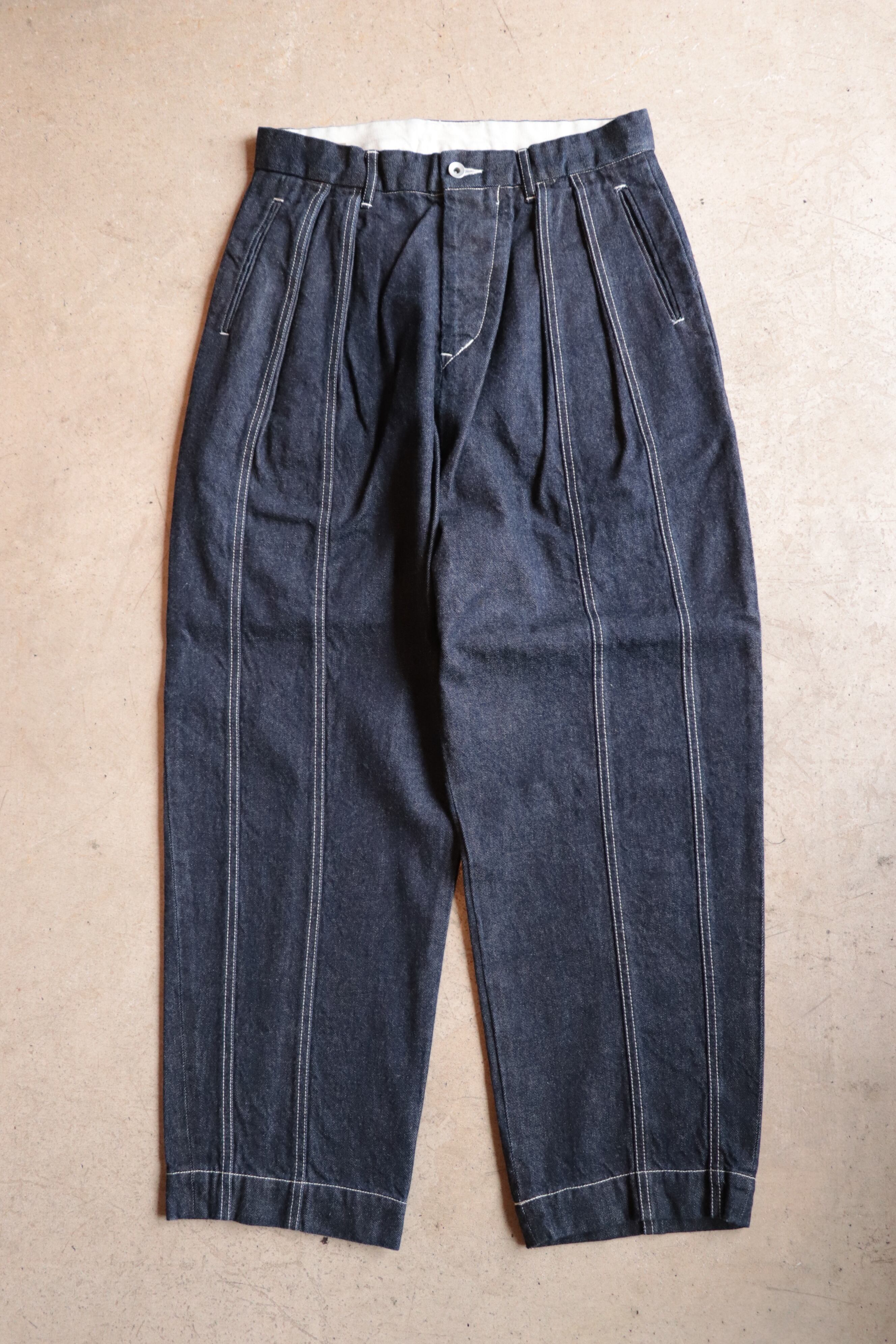 フロントには特徴的な2本のステッチが入っており、バックはトラウザーズのようなディテールでワーク感のあるデニムがフォーマルな印象になっています。