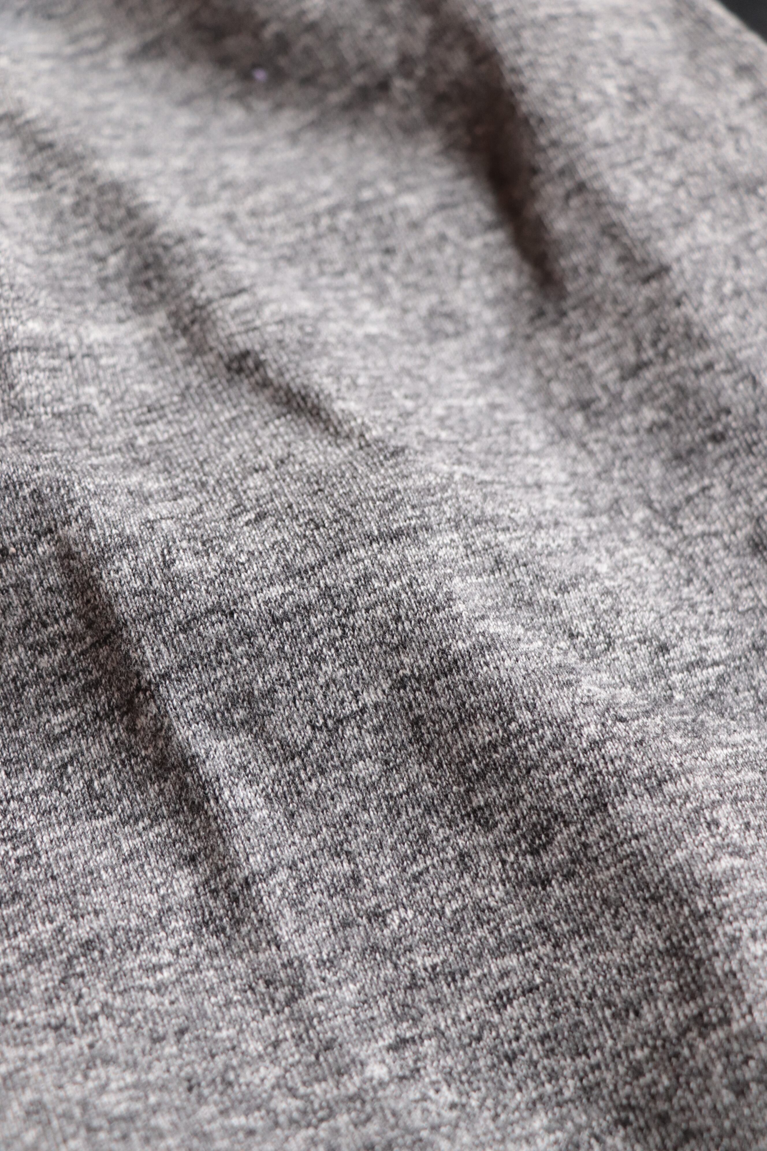 吊り編み機でゆっくり編み立てることで均等に度目が詰まり、着用と洗濯を繰り返しても縮みやゆがみが起こりにくくなっています。