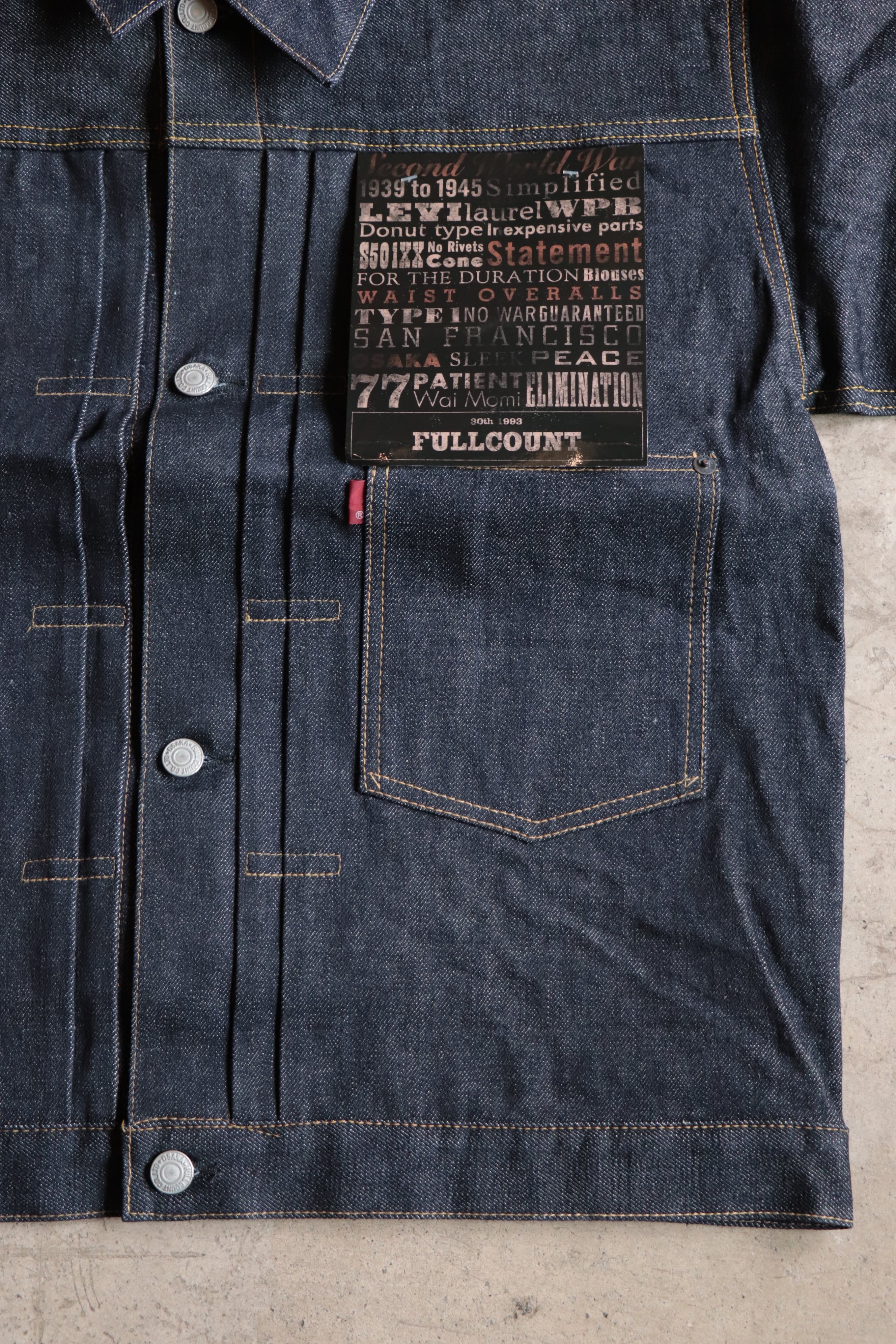 袖はヴィンテージでも極稀に見られる1枚袖、シルエットは定番の1stをベースに、オリジナルに忠実にするためにややワイドに調整してあります。