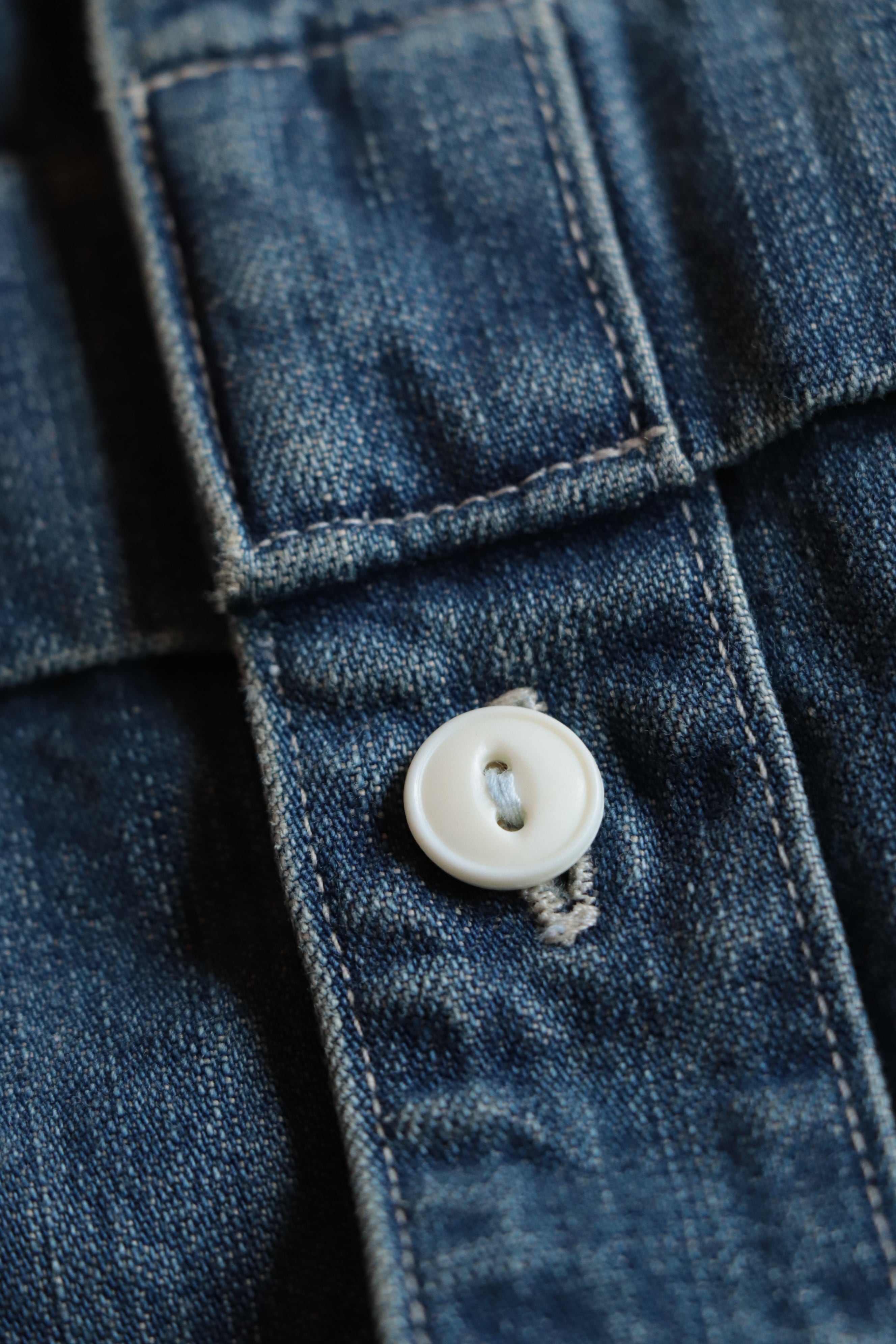 襟のチンストラップや脇のミミつき空環など、ディテールのヴィンテージワークシャツらしさは抑えられており、リサイズがもたらす独特なワイドシルエットが特徴的なシャツとなっております。