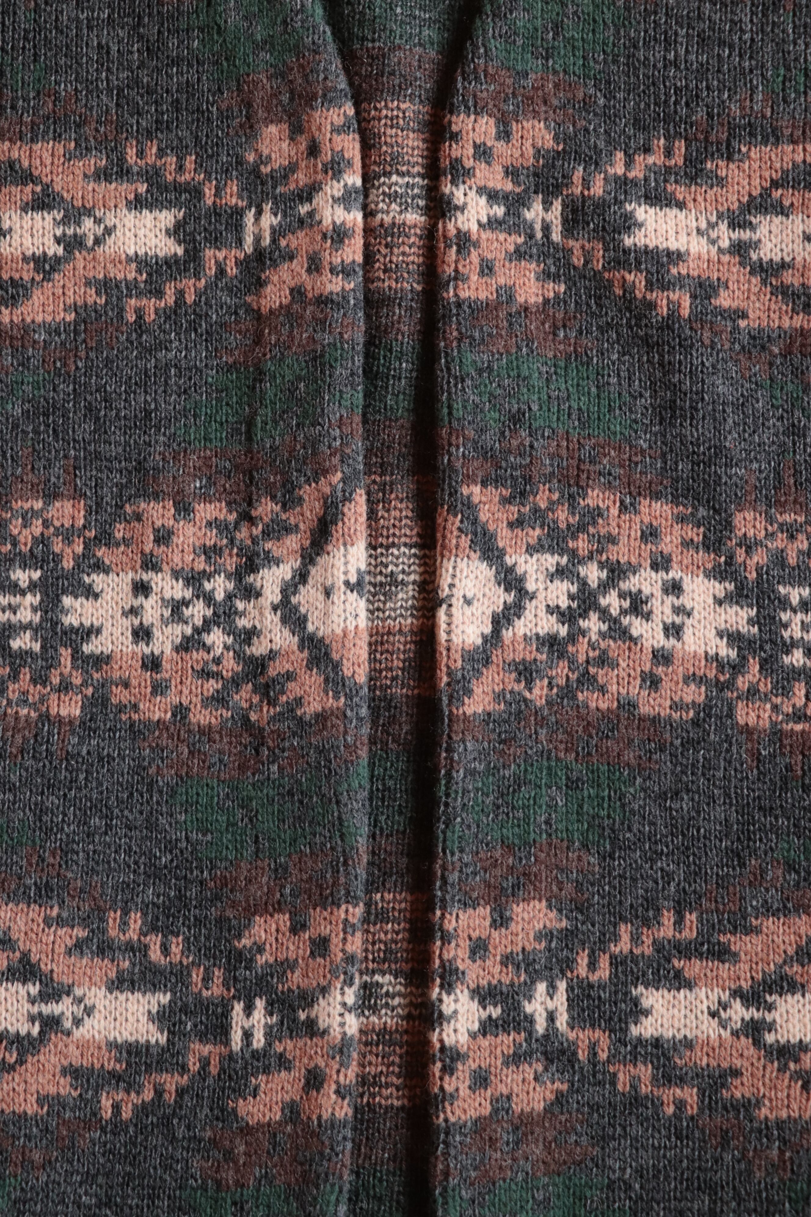 ラムウール80%、ナイロン20%の糸を使用したダブルジャガード編みの総柄生地を使用しています。