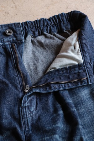 また、ゴムの仕様でありながら、ドローコードは付けずにベルトループを付けておりますので、楽な穿き心地とは対照的に、見た目としては非常にしっかりとした雰囲気です。
