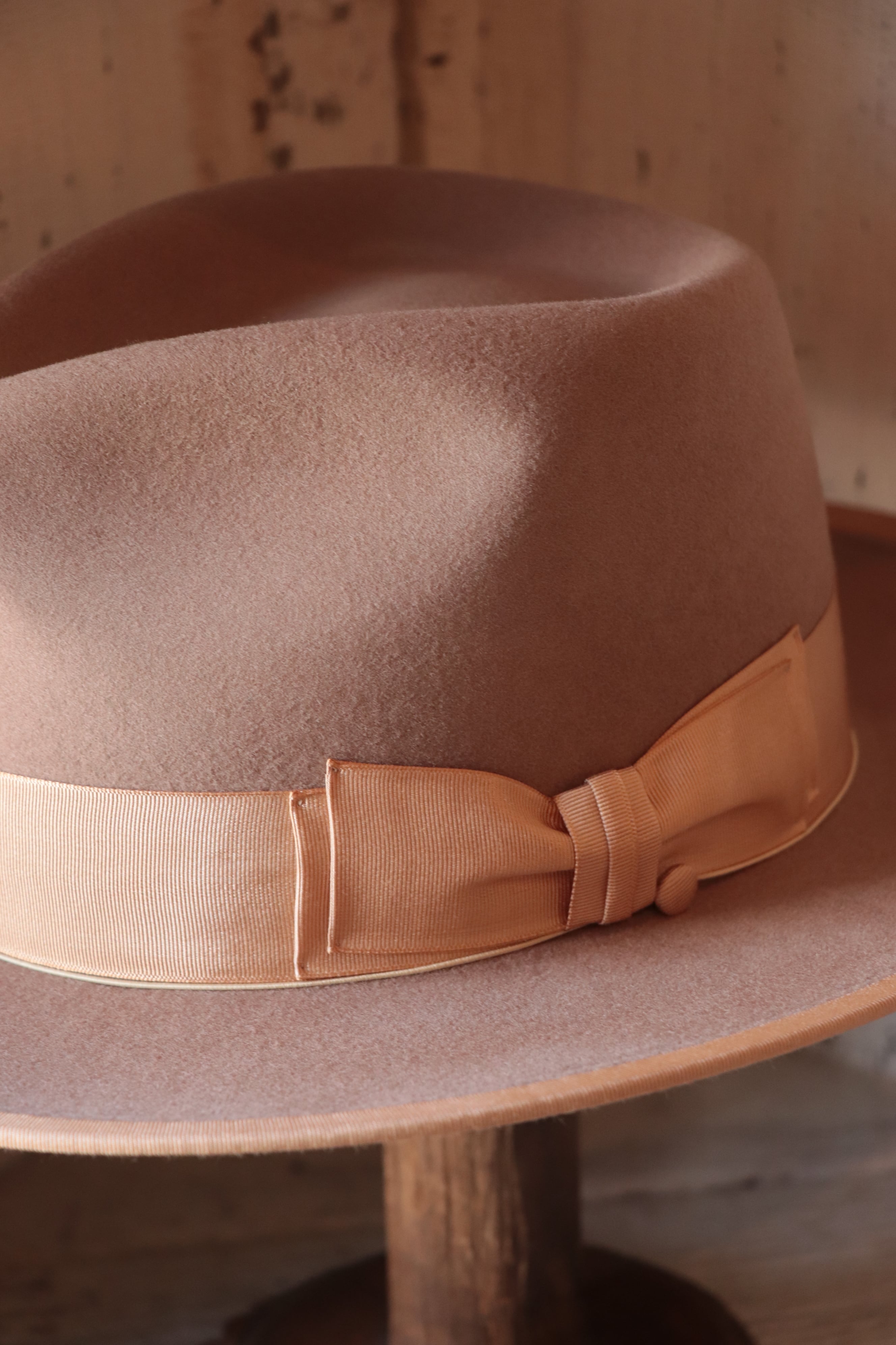 こちらのハットは、その貴重な工場の一つで、1950年代のアメリカで主流であった、金型によるカチッとした成形を基本として作られています。