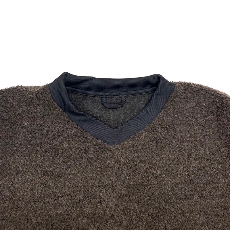また肌に直接あたる袖口、首周りはポリエステルジャージ素材のリブを使用しているので、ウール製品が苦手な方にも是非お試し頂きたい1着です。