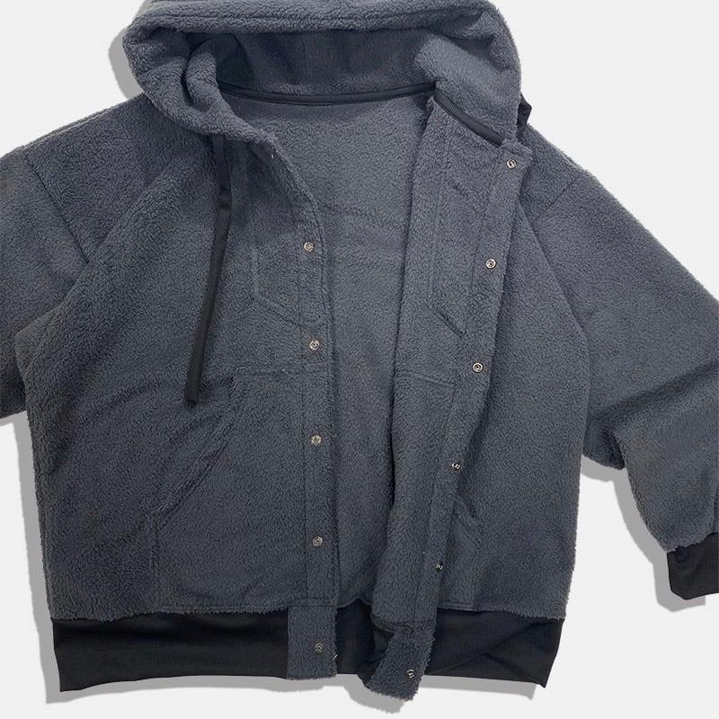 身生地に使用したボリュームのある両面ボアは、上下左右4方向への優れたストレッチ性と、撥水、透湿性を持ち合わせた多機能素材。